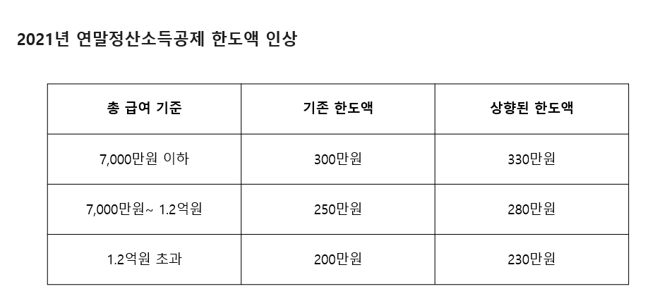2021년 연말정산 소득공제율 확대