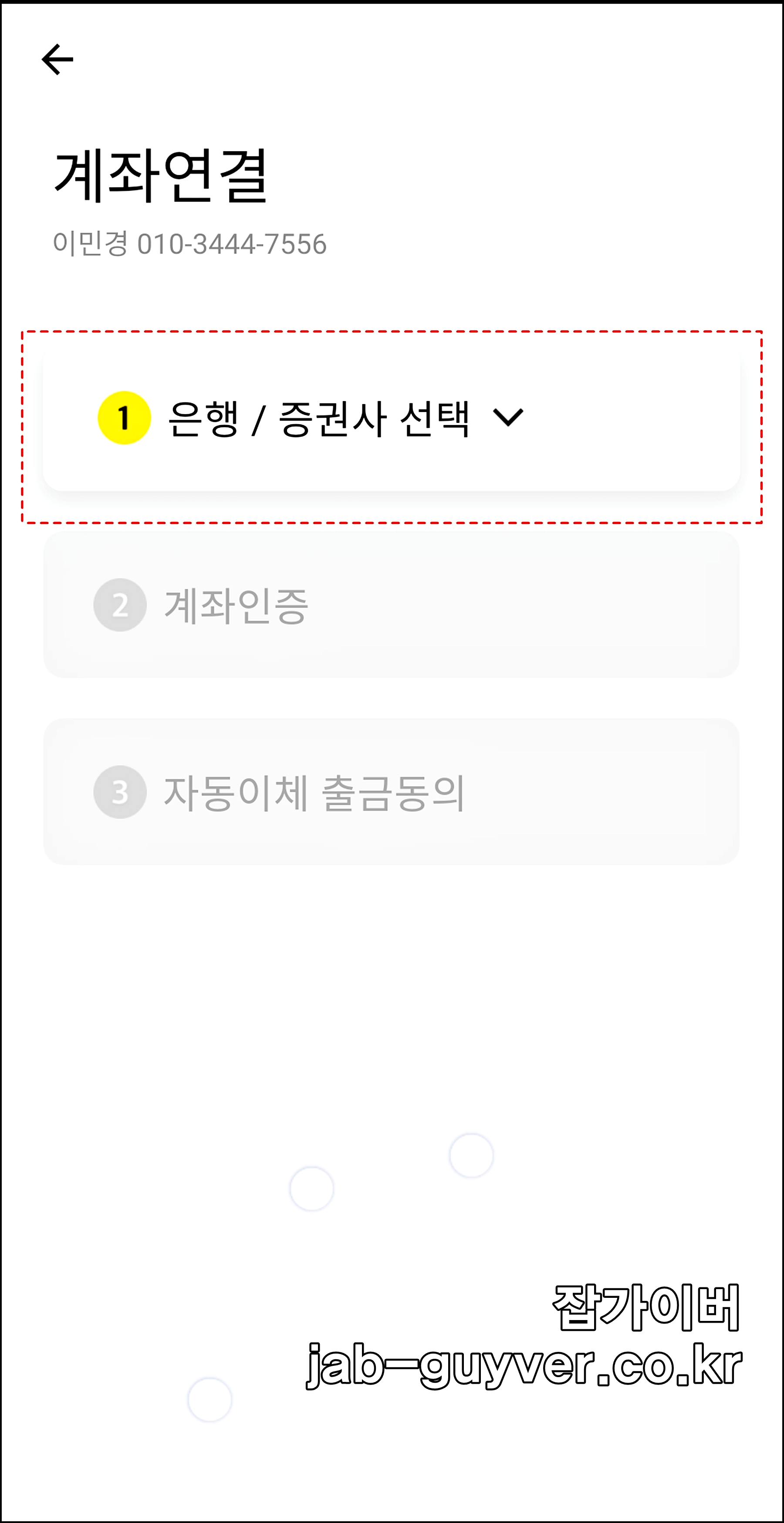 이후 해당 은행의 계좌번호를 입력 후 계좌인증을 통해 등록이 완료됩니다.
