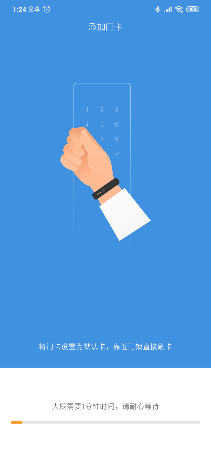 도어락 입장에선 미밴드가 “손목에 찬 카드키”처럼 보입니다. 그래서 도어락 쪽에서 카드 등록 모드를 먼저 띄워놓고, 미밴드를 센서에 갖다 대는 흐름이 자연스럽습니다.