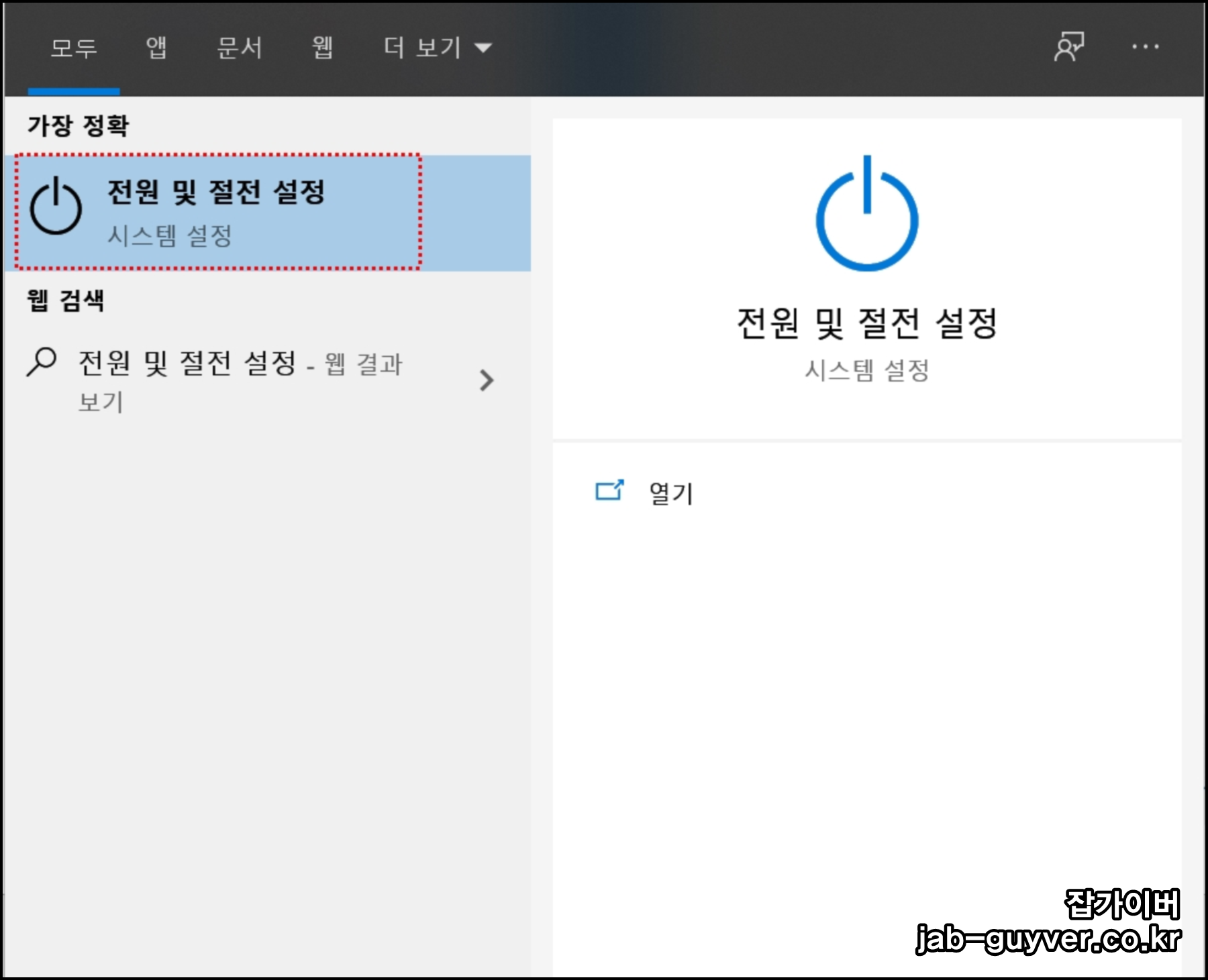 윈도우로고를 클릭 "전원 및 절전 설정"을 입력 해 실행합니다.