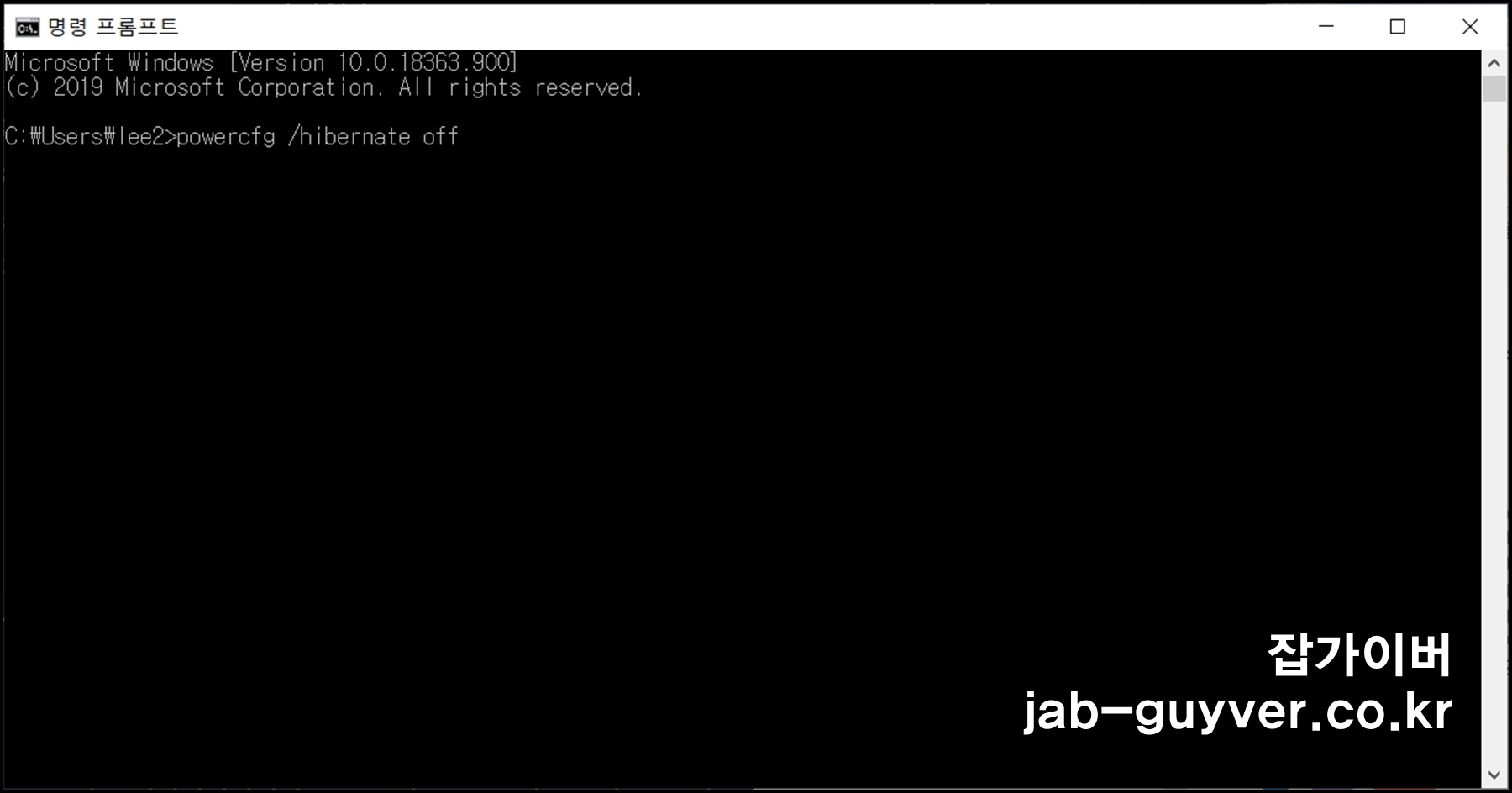 - "명령 프롬프트(관리자)" 선택 후 powercfg /hibernate off 입력 후 엔터
