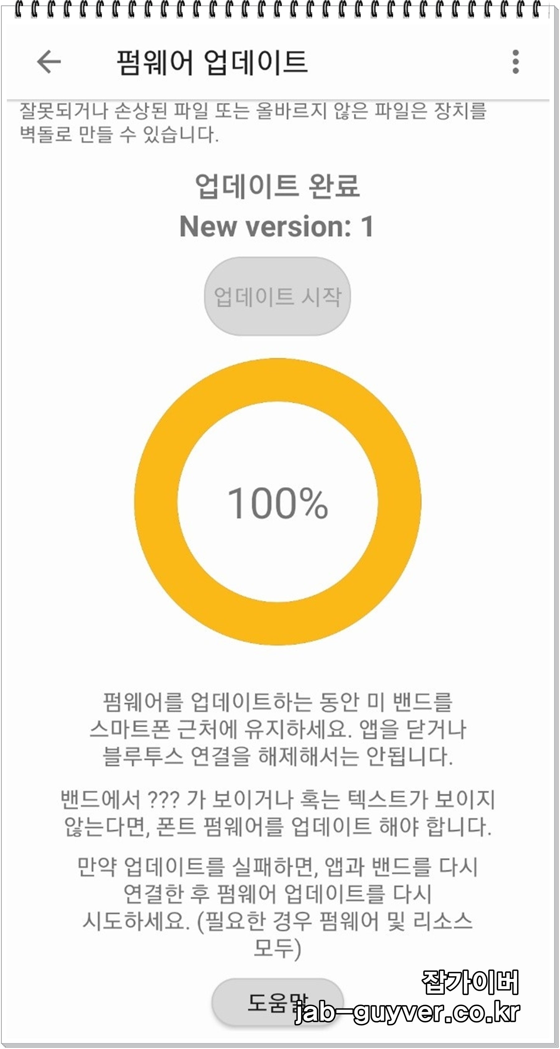 - 미밴드에서 ??? 라는 글씨가 보이는등 글씨가 제대로 보이지 않는다면 폰트 업데이트를 해야합니다.