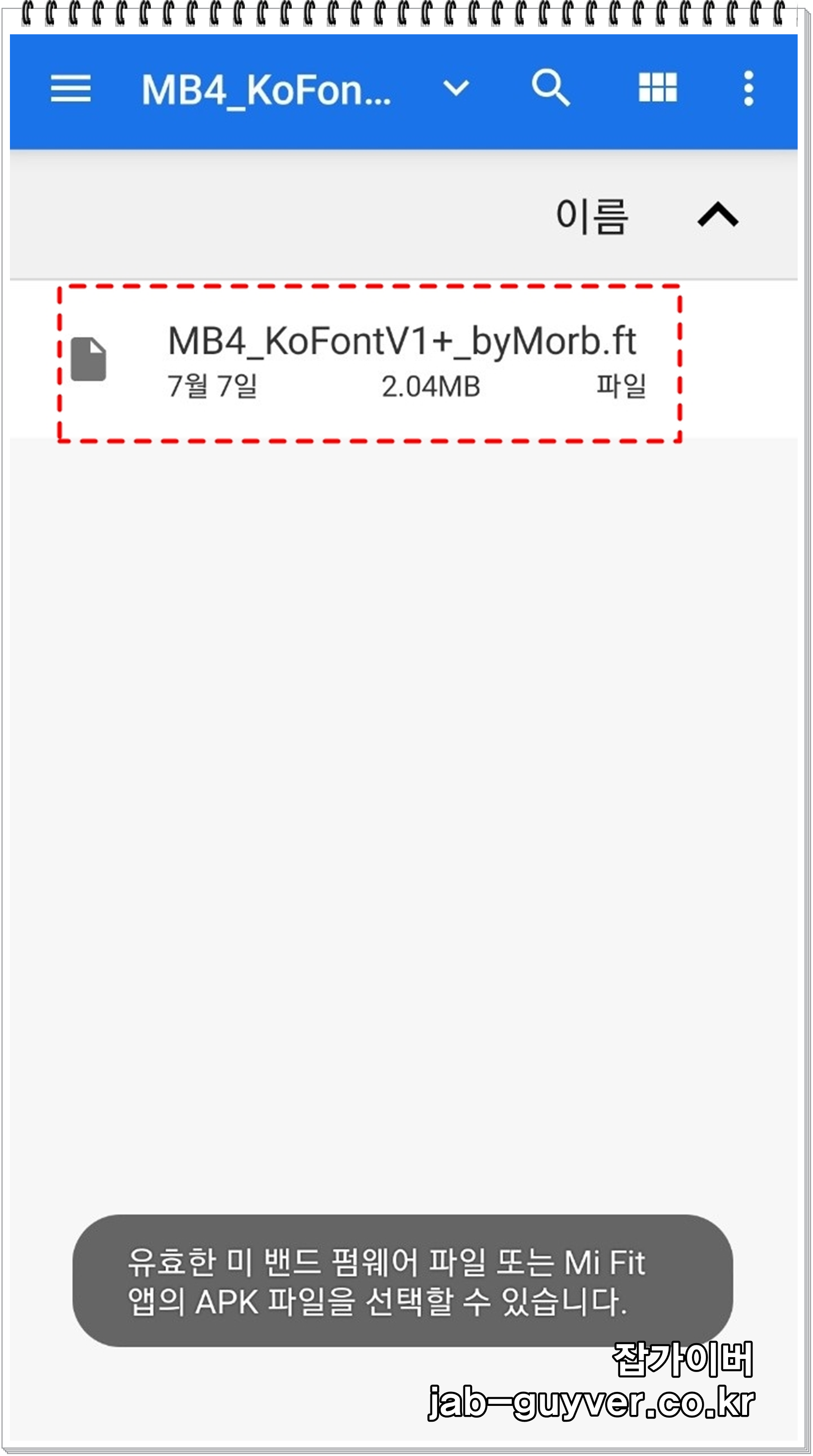 - 다운로드 받은 미밴드5 한글패치파일을 선택합니다.