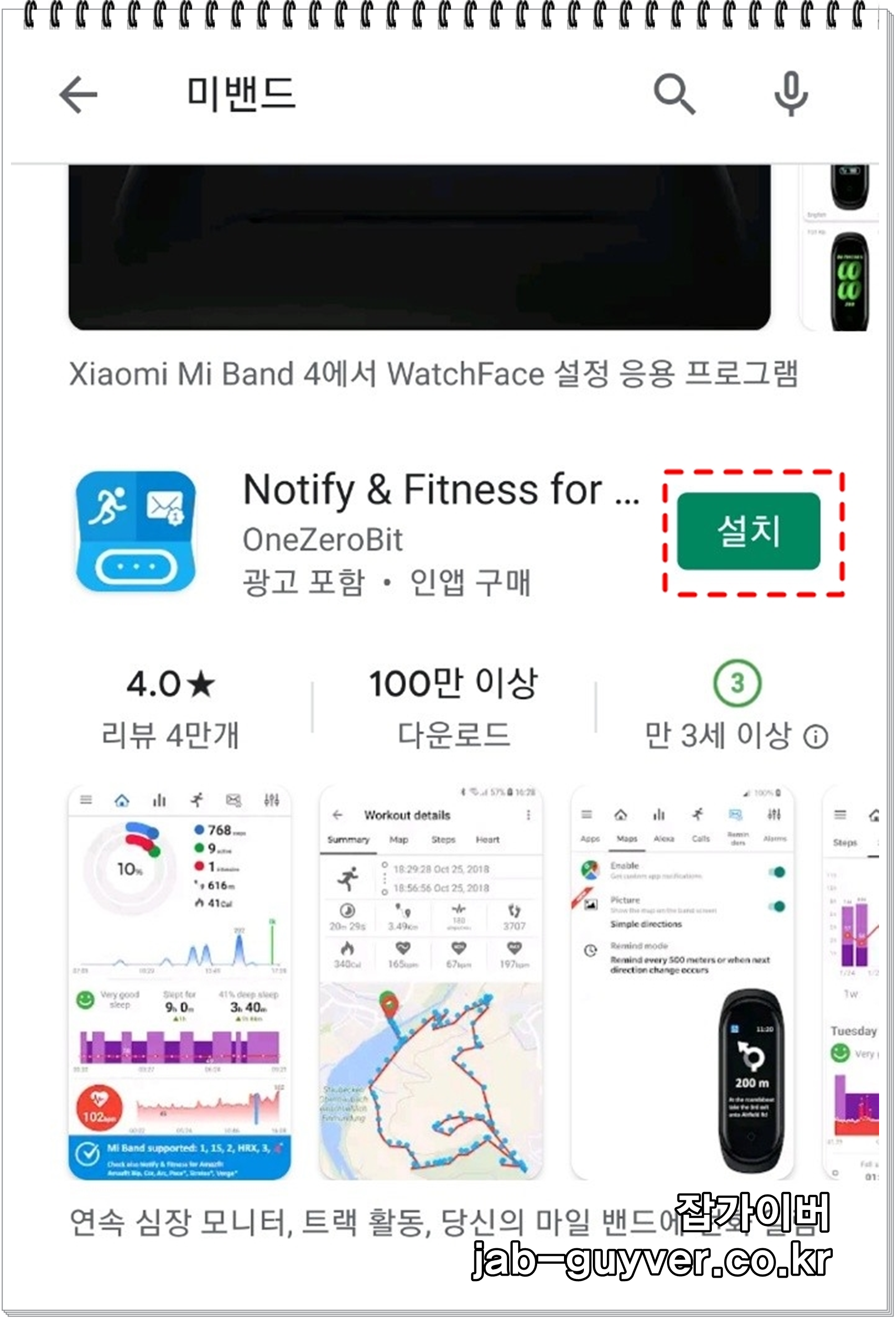 - 플레이스토어에서 미밴드를 검색합니다.