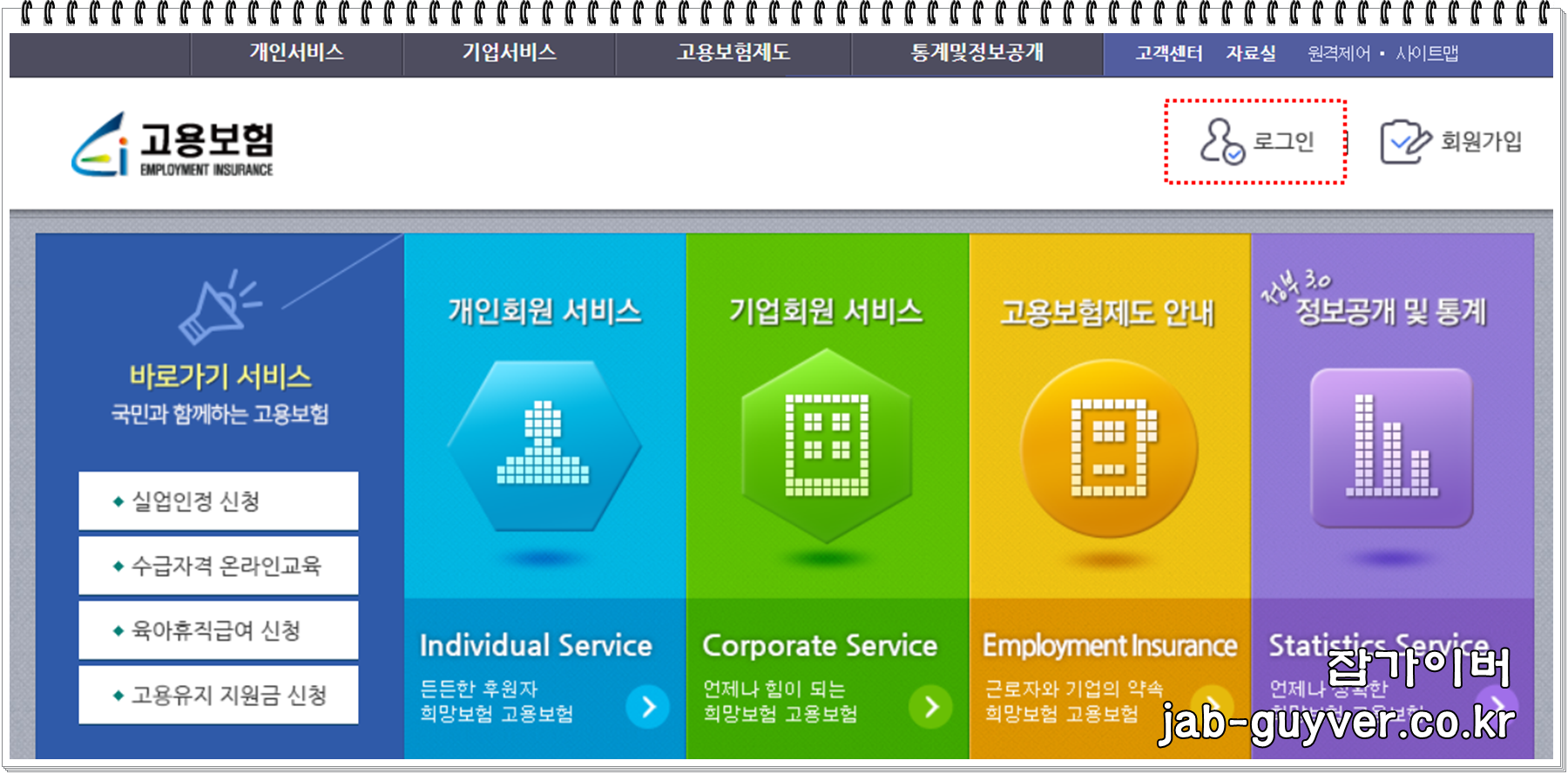 고용보험 사이트에 접속 후 실업급여를 받았던 본인 계정으로 로그인합니다.