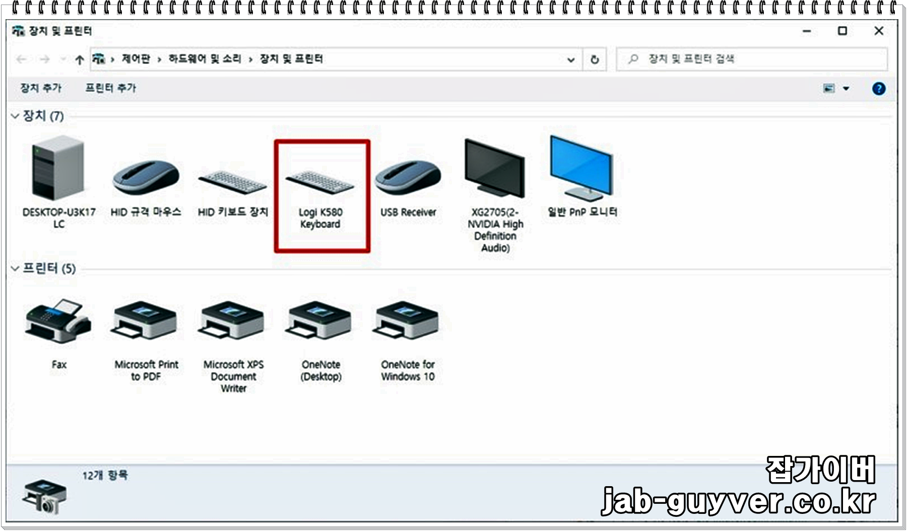 그럼 현재 장치에 연결된 블루투스 외에도 다양한 프린터와 모니터 등 연결된 모든 제품을 볼 수 있습니다.