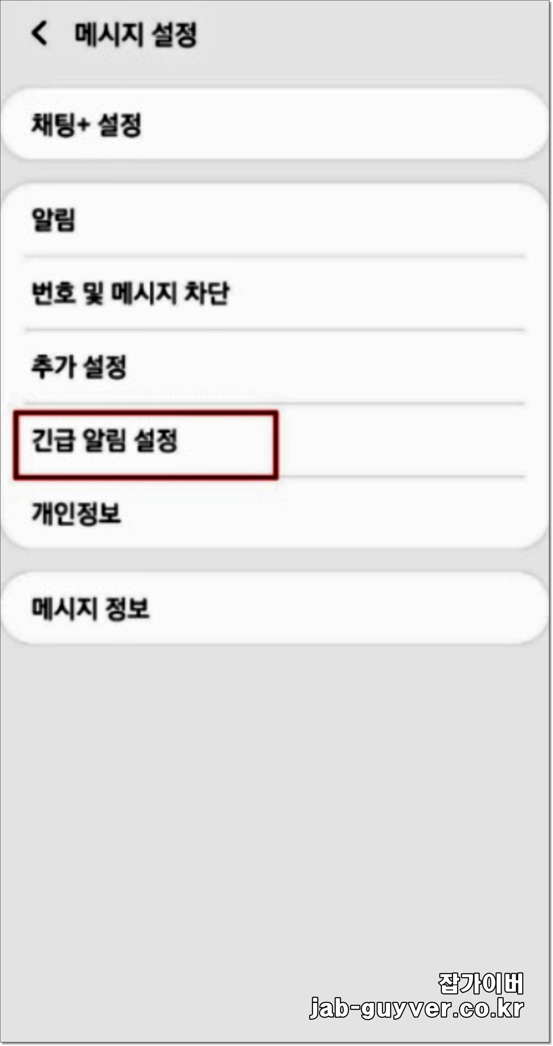 안드로이드 갤럭시 재난문자 차단
