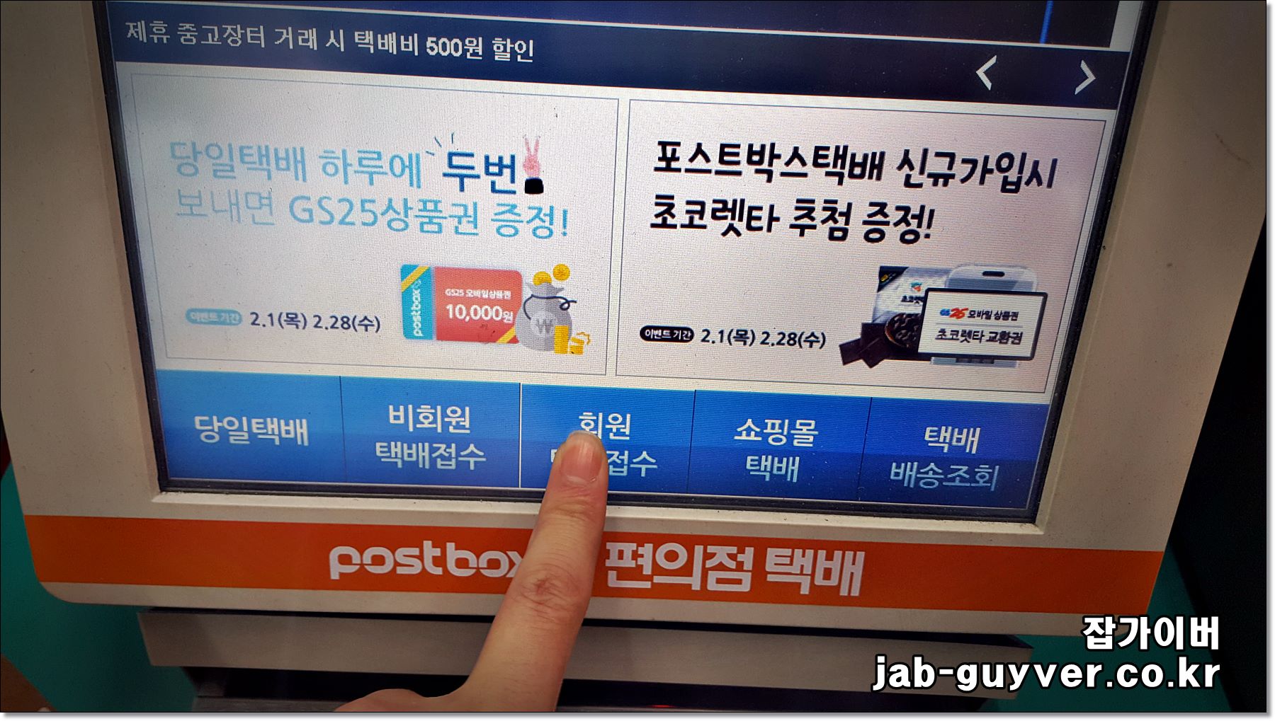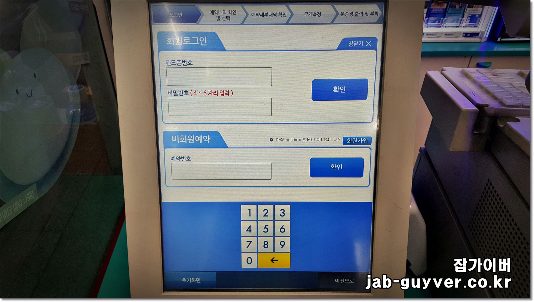포스트박스에서는 보통 회원/비회원 접수가 나뉘고, 무게 측정과 주소 입력(또는 예약 건 불러오기), 운임 확인, 운송장 출력 순서로 진행됩니다.
