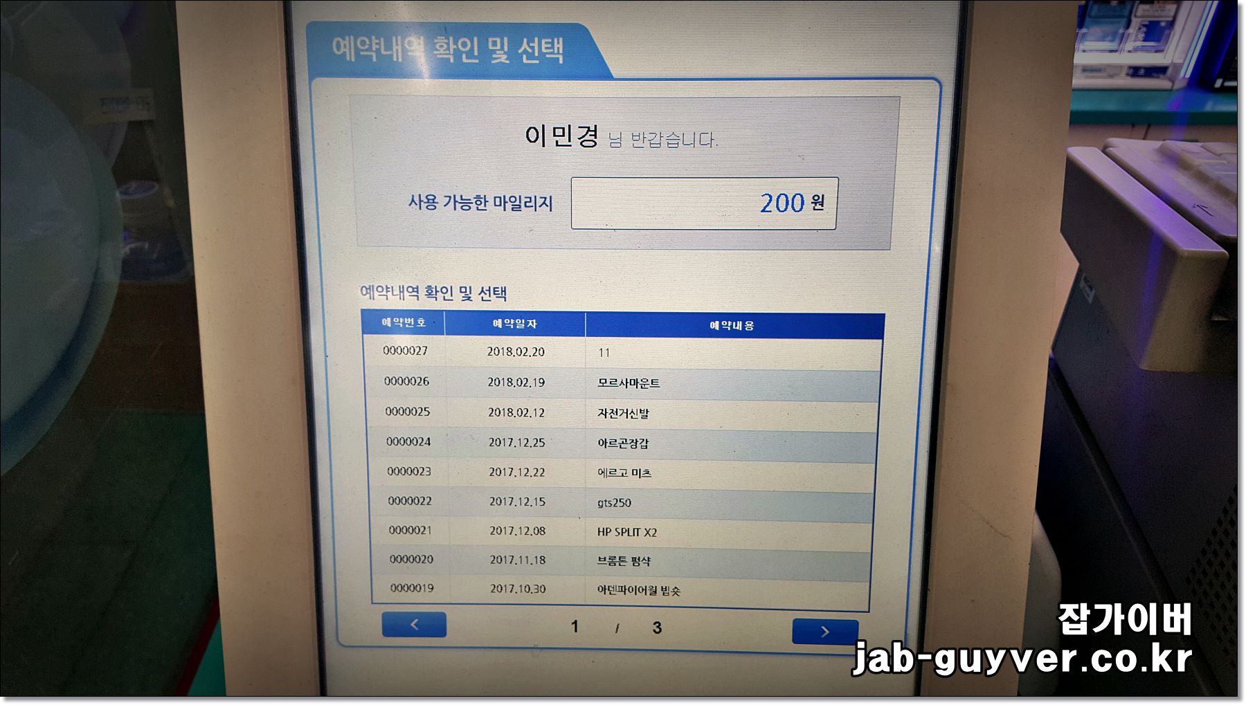 예약 목록에서 해당 건을 선택하는 화면 예시입니다.