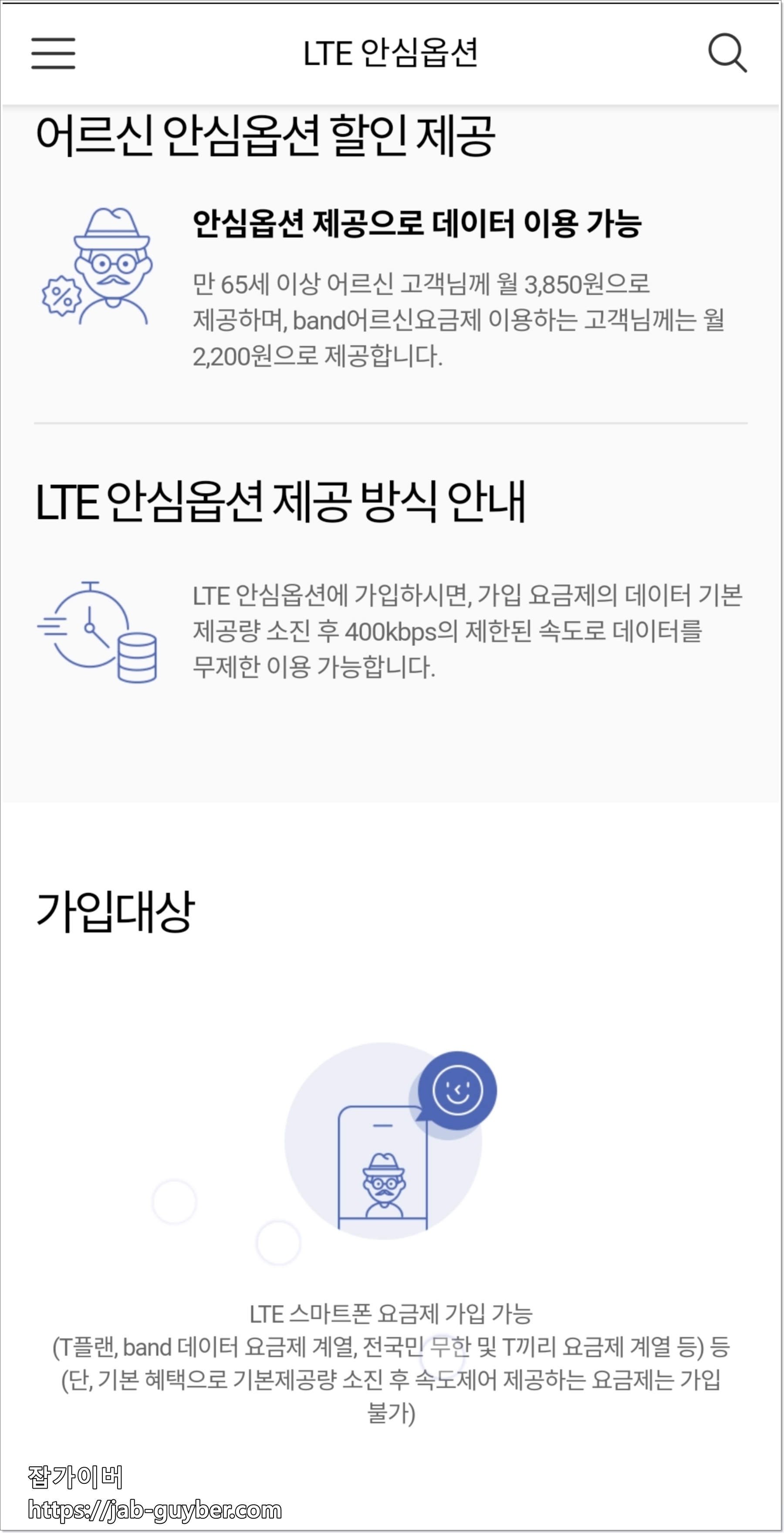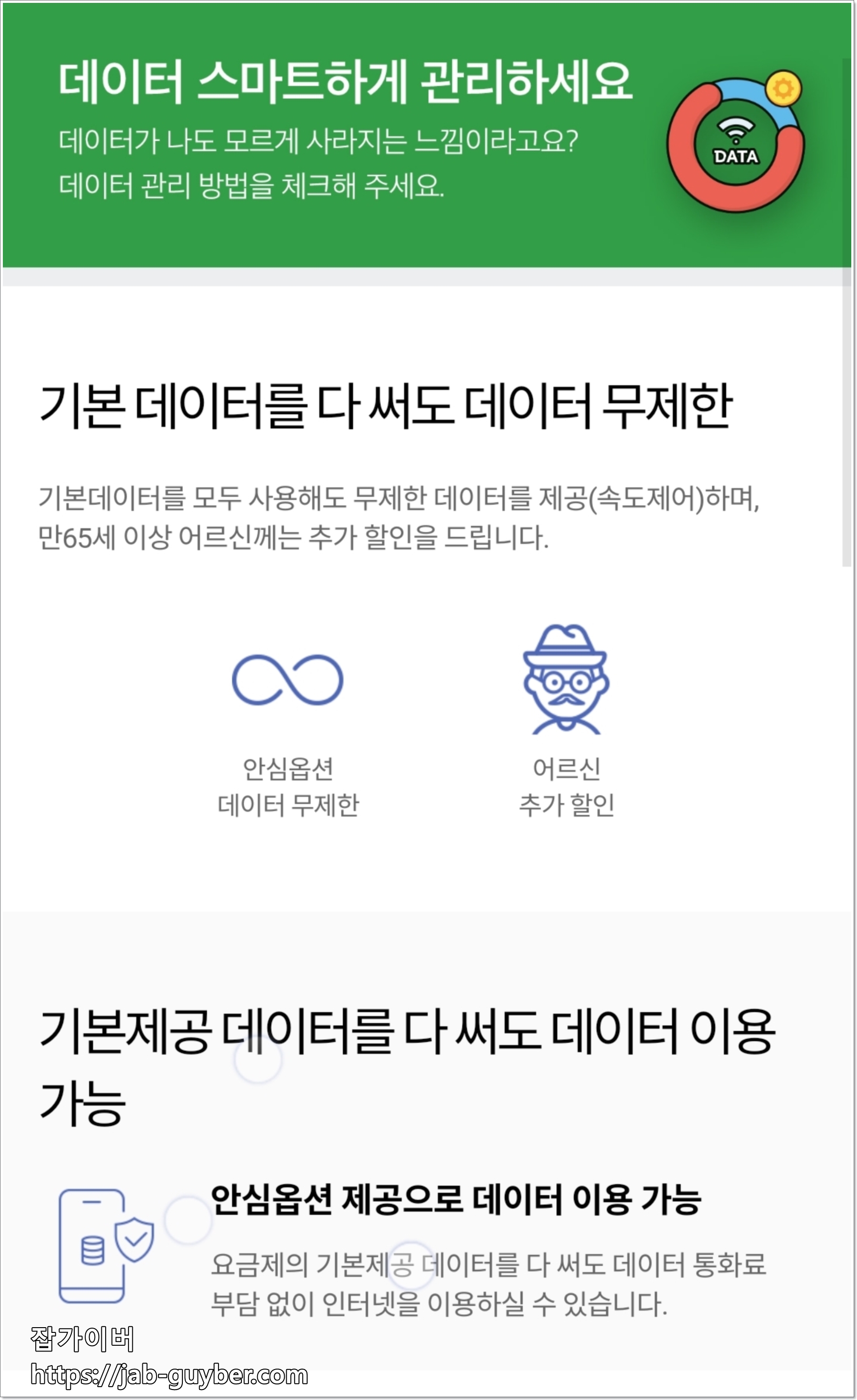 - 64세 이상을 위한 데이터 콘텐츠 요금제로 연세 드신 분들을 위한 가성비 좋은 요금제를 자랑합니다.