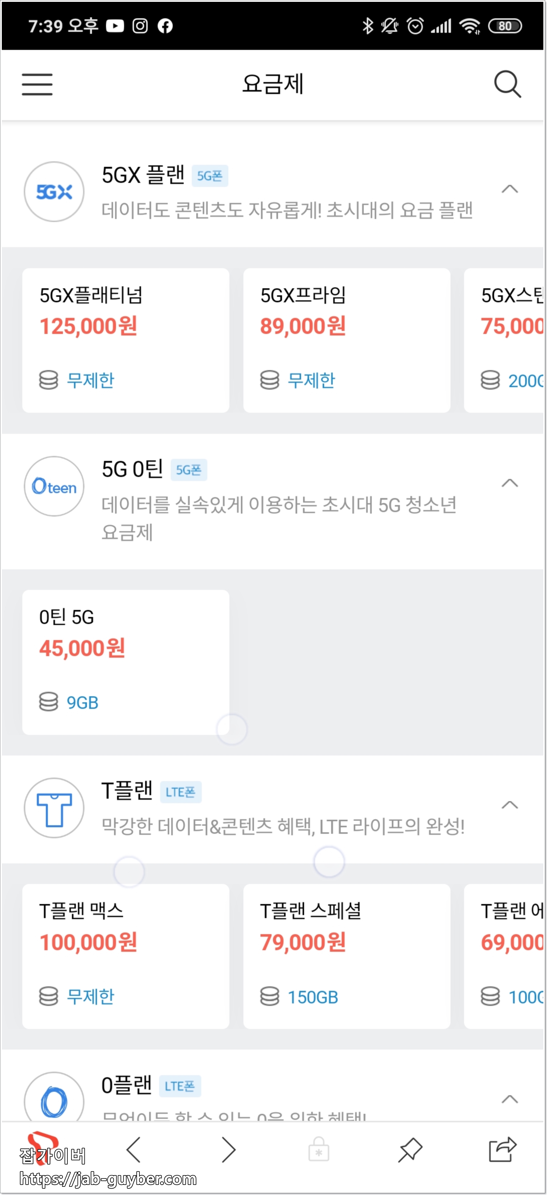 만약 핸드폰을 많이 사용하지 않지만 카카오톡만 주로 사용하는 분들은 SKT 요금제를 가장 저렴한 것으로 선택 후 부가서비스를 필요한 요금제로 추가하는 것이 핸드폰 요금을 절약할 수 있는 방법 중 하나라고 할 수 있습니다.