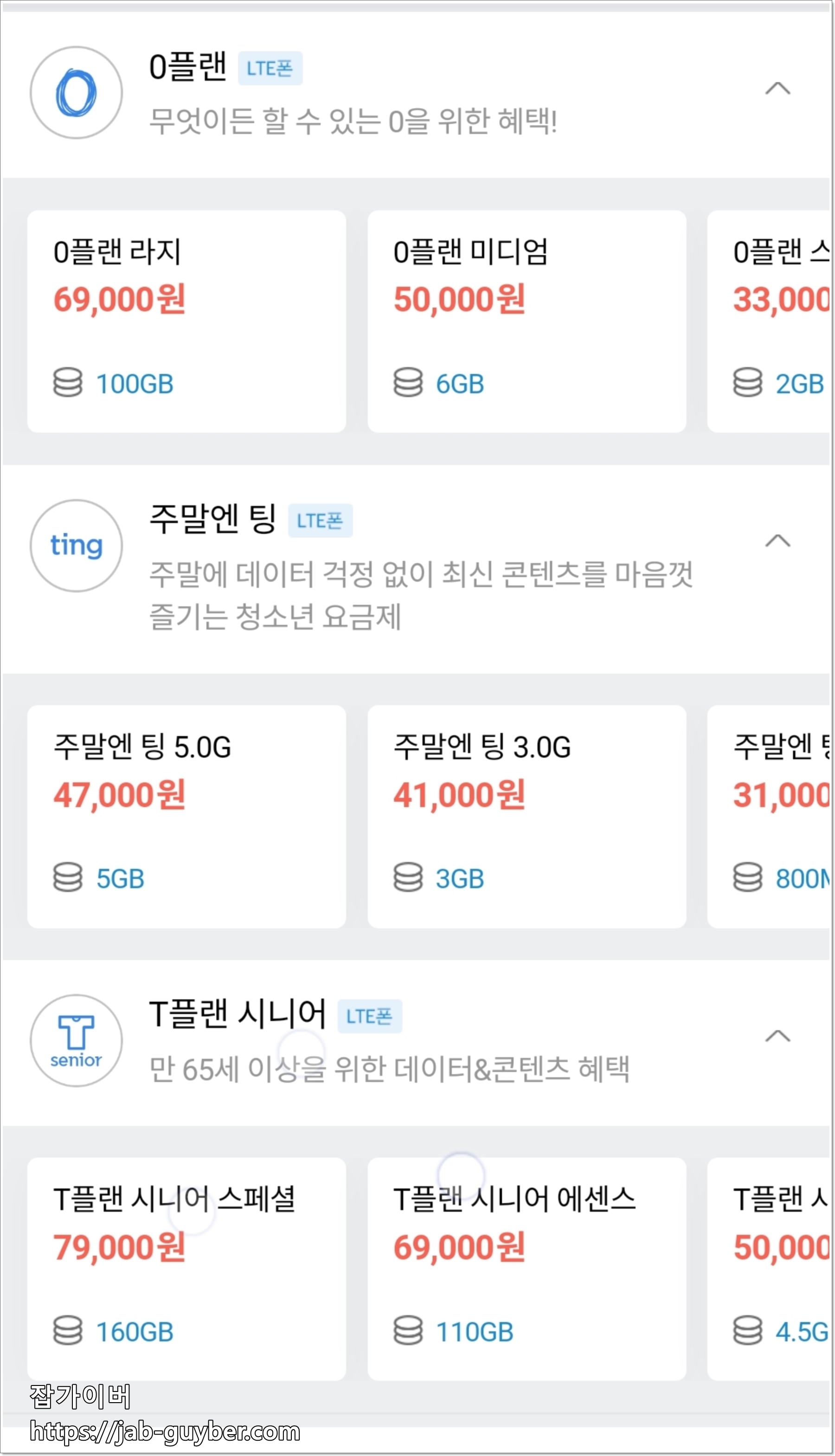 - 주말엔 팅 5.0G : 데이터 5GB : 4만 7천 원