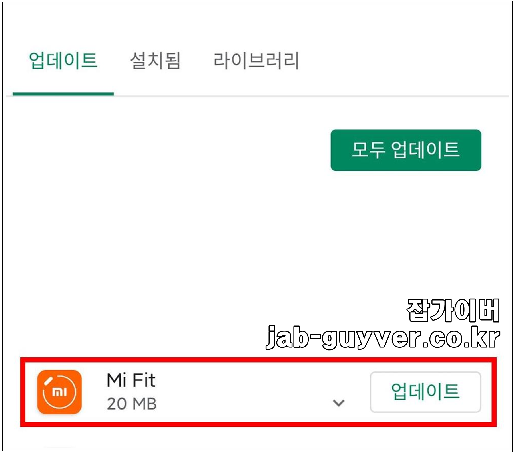 안드로이드 어플 "미핏" 자동 업데이트 차단