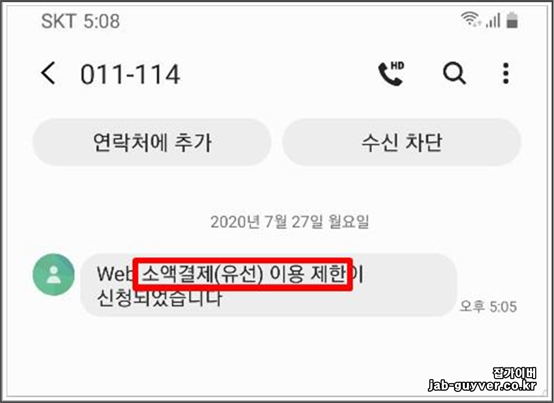 이렇게 차단이 완료되었다면 바로 114 번호로 소액결제 (유선) 이용 제한이 신청 완료된 것을 다시 한번 확인합니다.