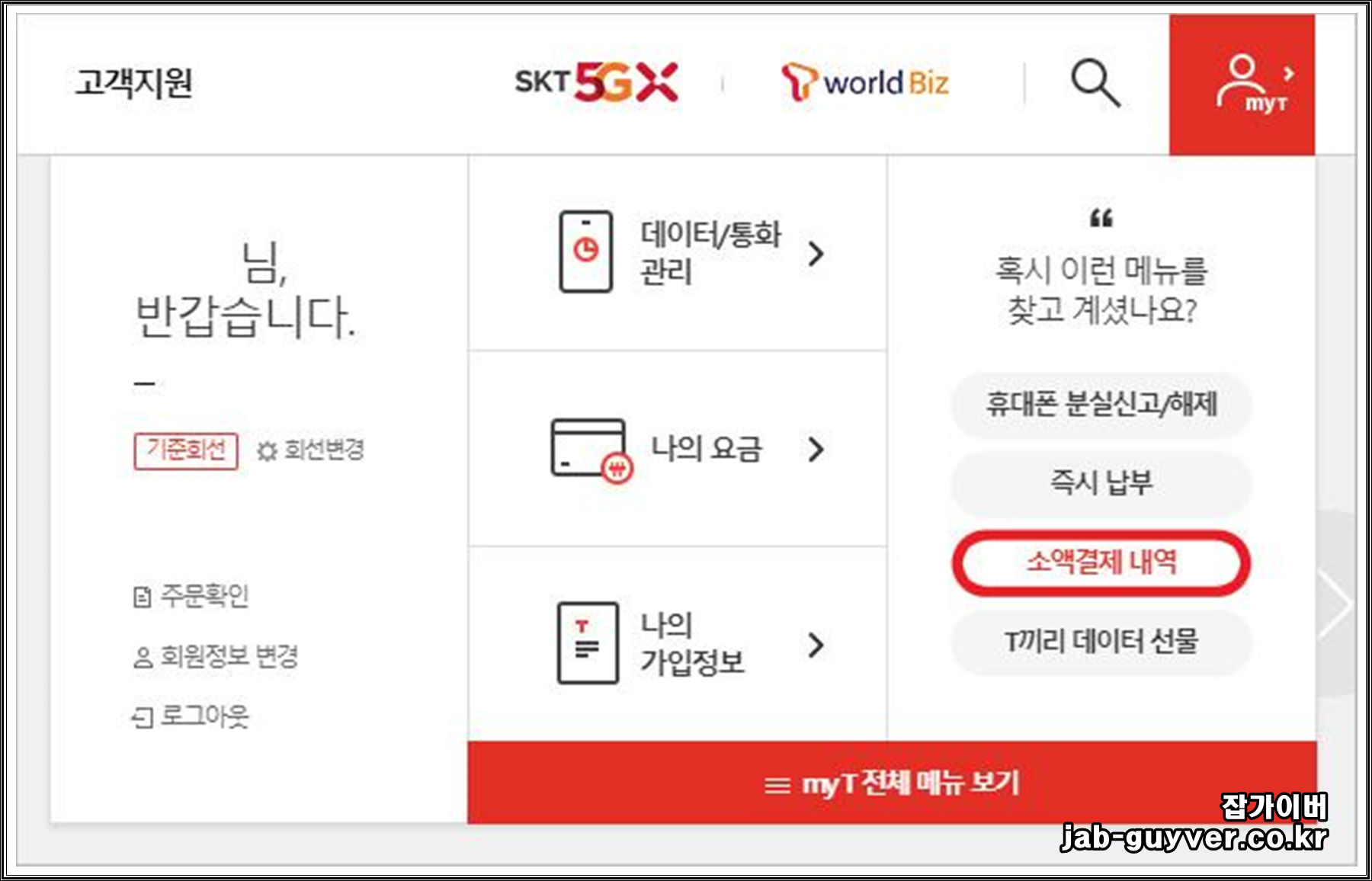 - SKT 홈페이지로 접속합니다.