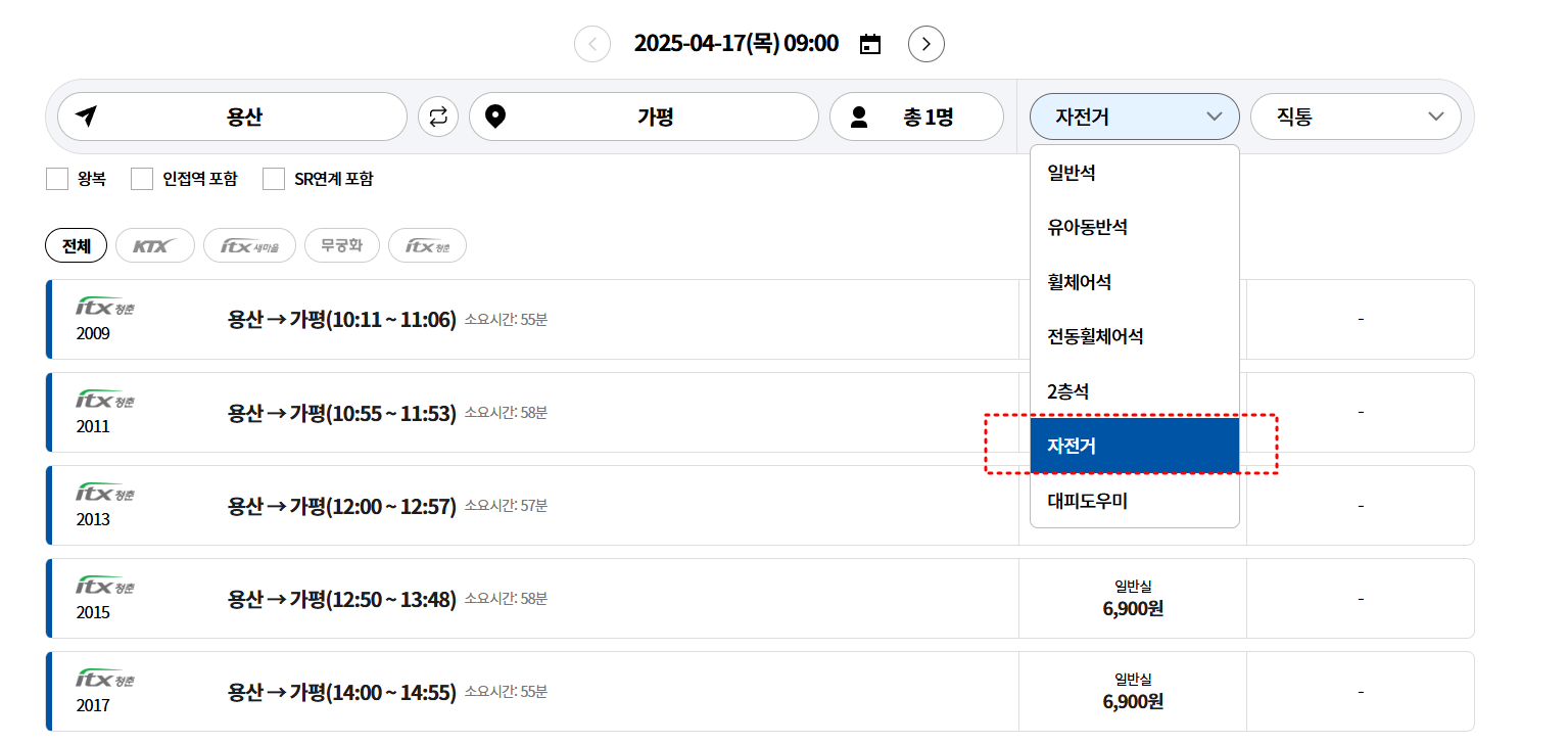 평일에는 자전거 탑승이 제한되며, 주말에는 일부 열차에 한해 가능합니다. 자전거 전용칸이 있는 열차를 예약해야 하며, 코레일 앱에서 ‘자전거 탑재 가능’ 여부를 확인할 수 있어요.