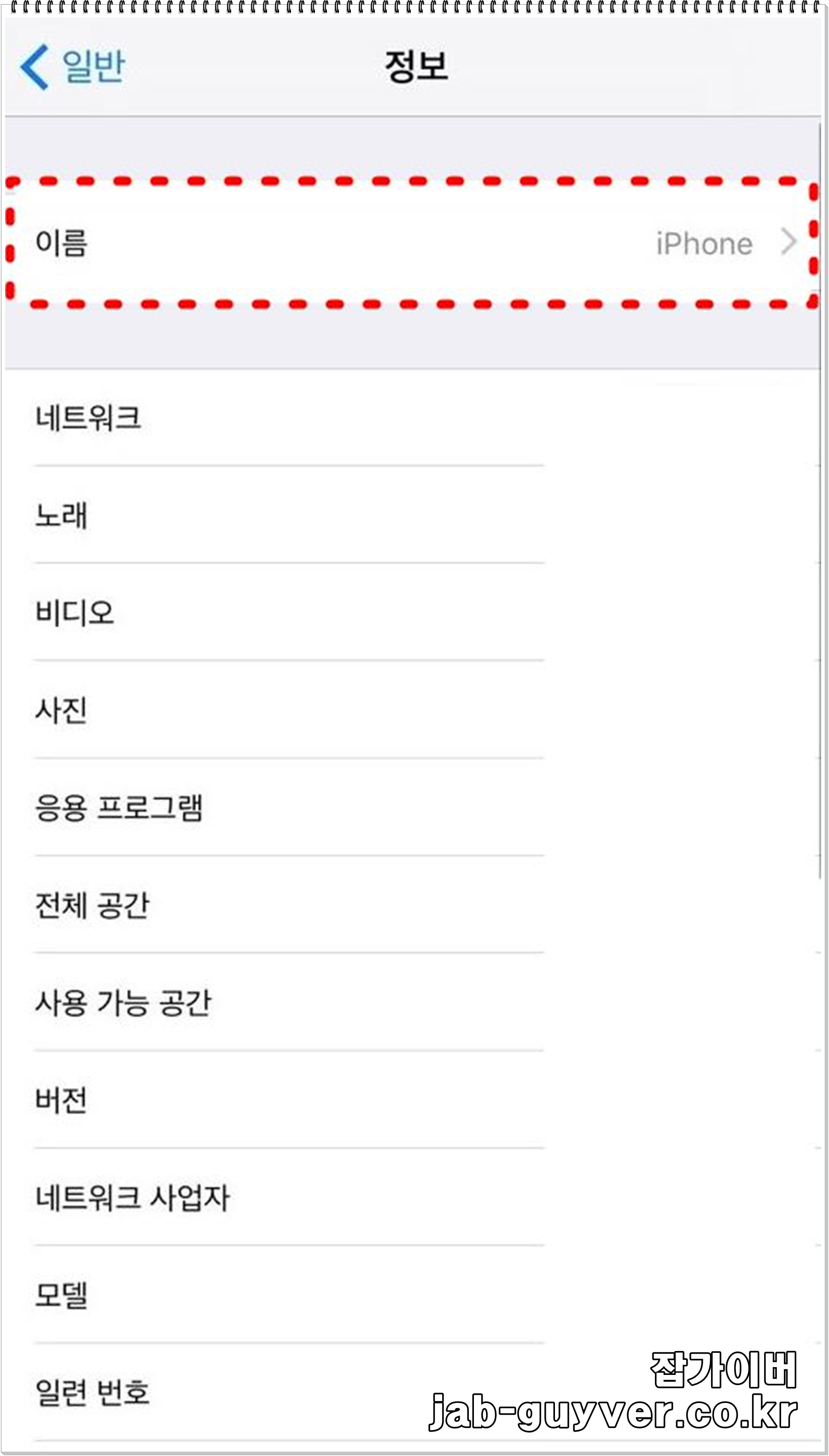 아이폰 설정 -> 일반 -> 정보로 들어갑니다.