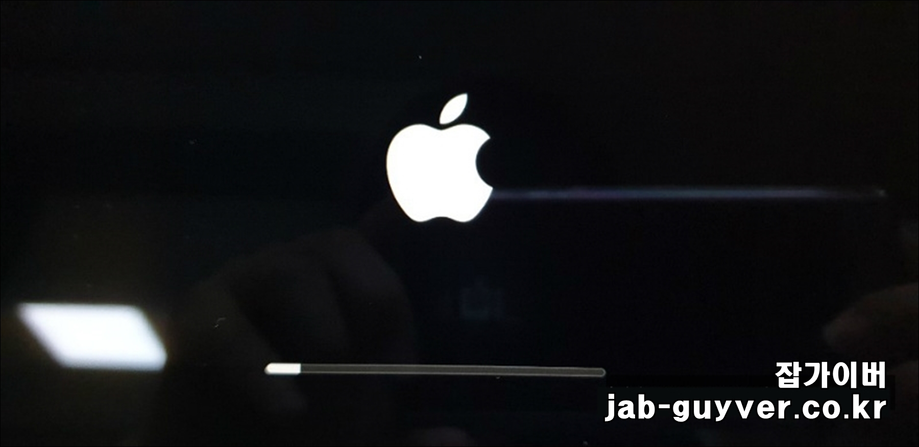 이렇게 맥북 부팅 중 단축키를 눌러주면 애플 로고와 함께 로딩이 진행되며 이후 "MacOS 유틸리티" 화면으로 넘어갑니다.