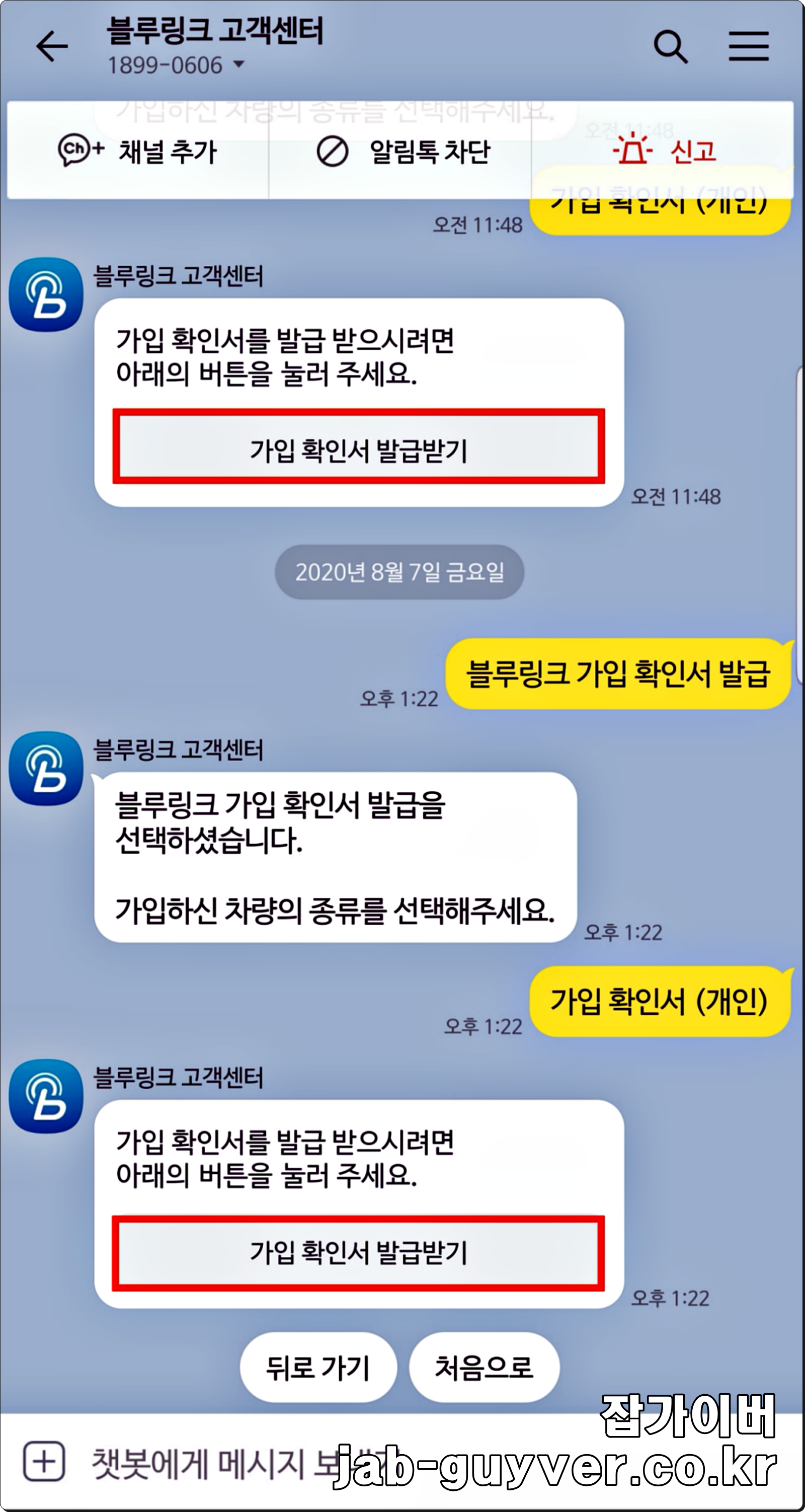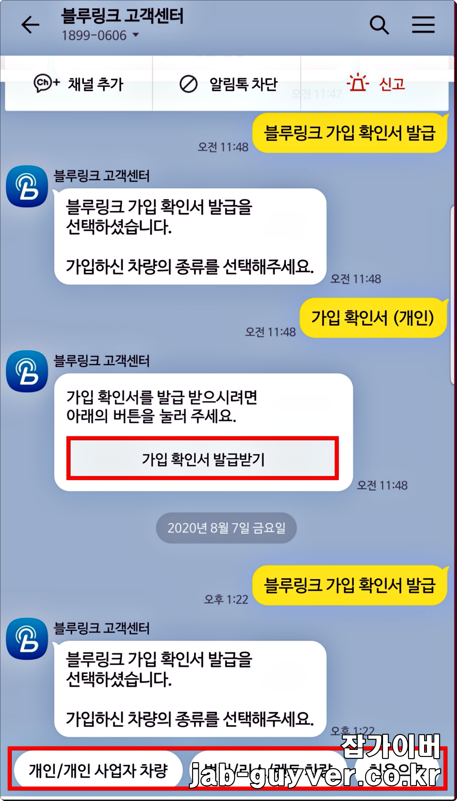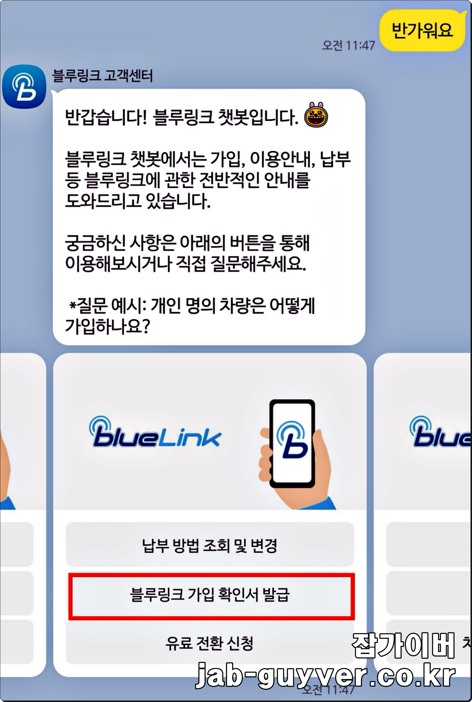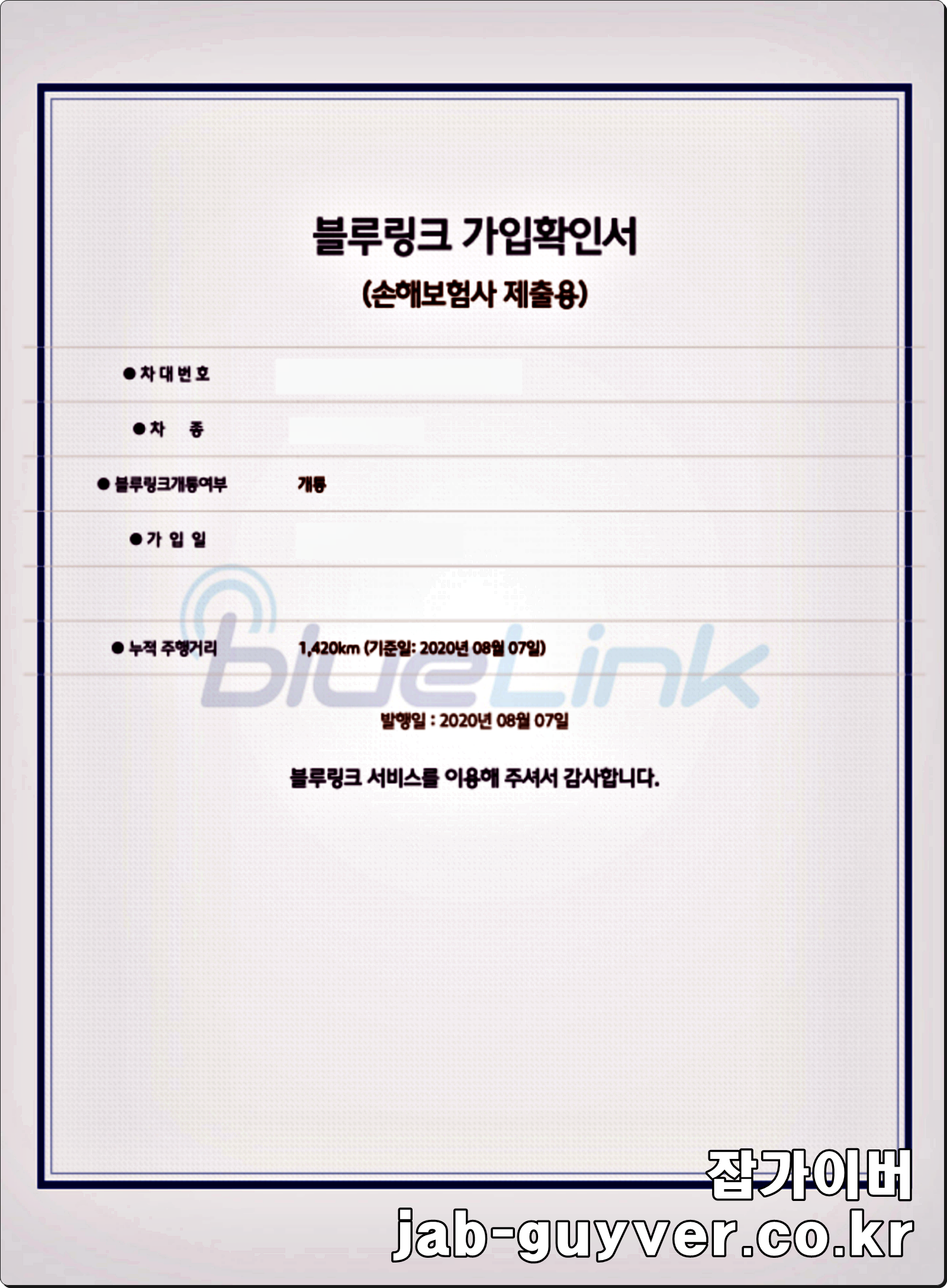 - 블루링크 가입 확인서 발급