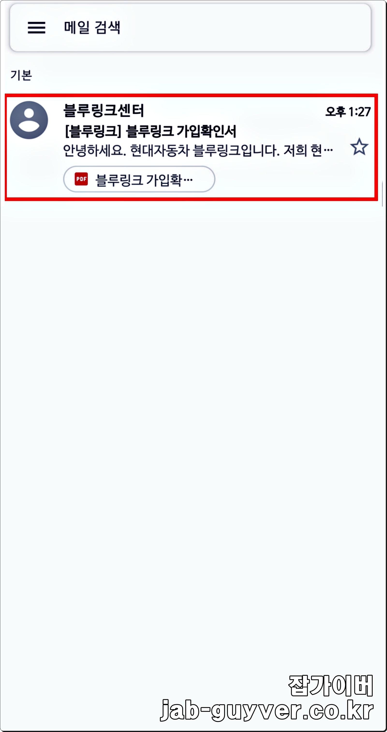 그럼 해당 메일로 현대자동차 블루링크 가입확인서가 전송되고 파일을 열어보거나 출력이 가능합니다.