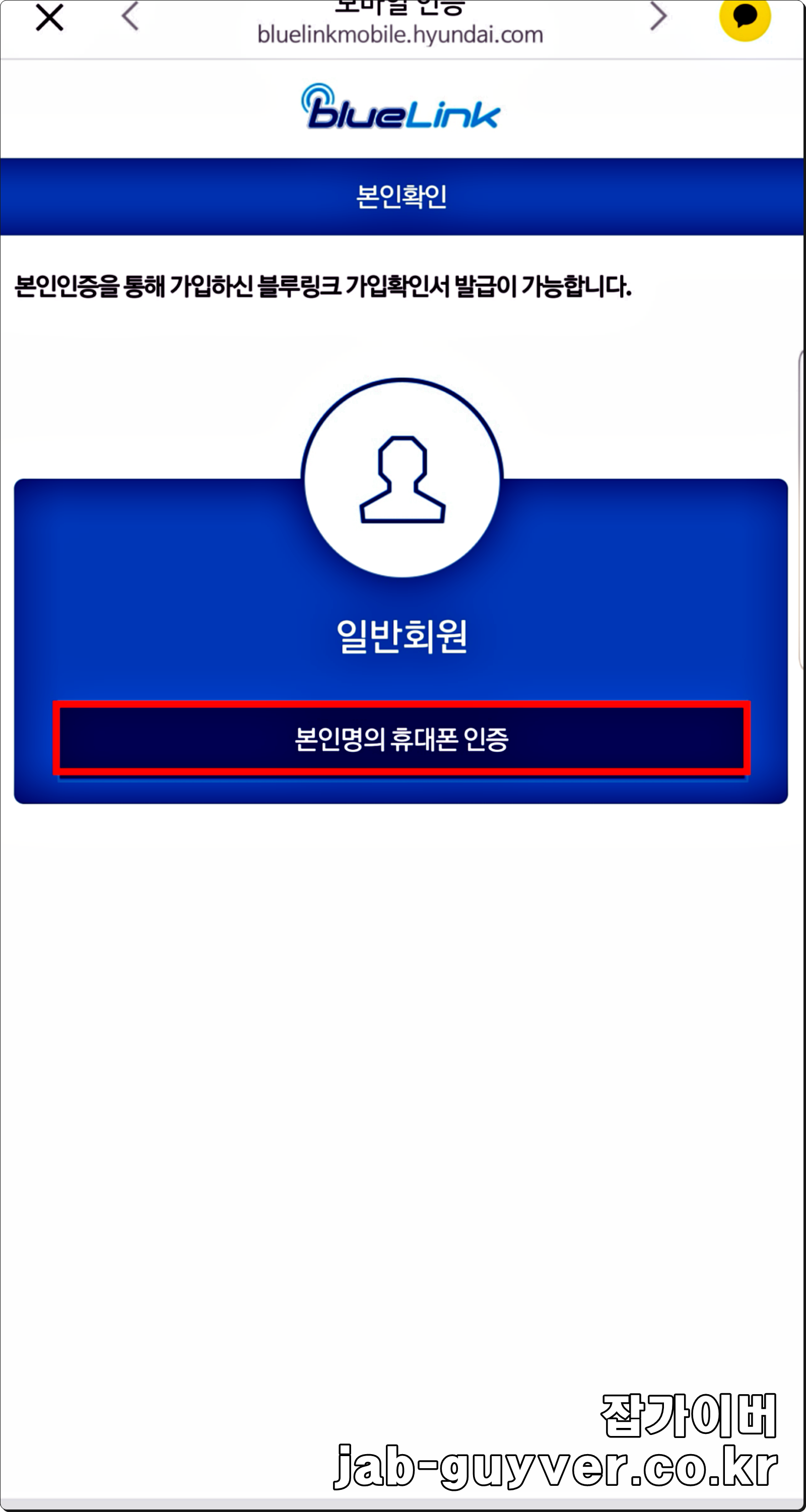블루링크 가입확인서를 발급받기 위해서는 본인인증을 해야 합니다.