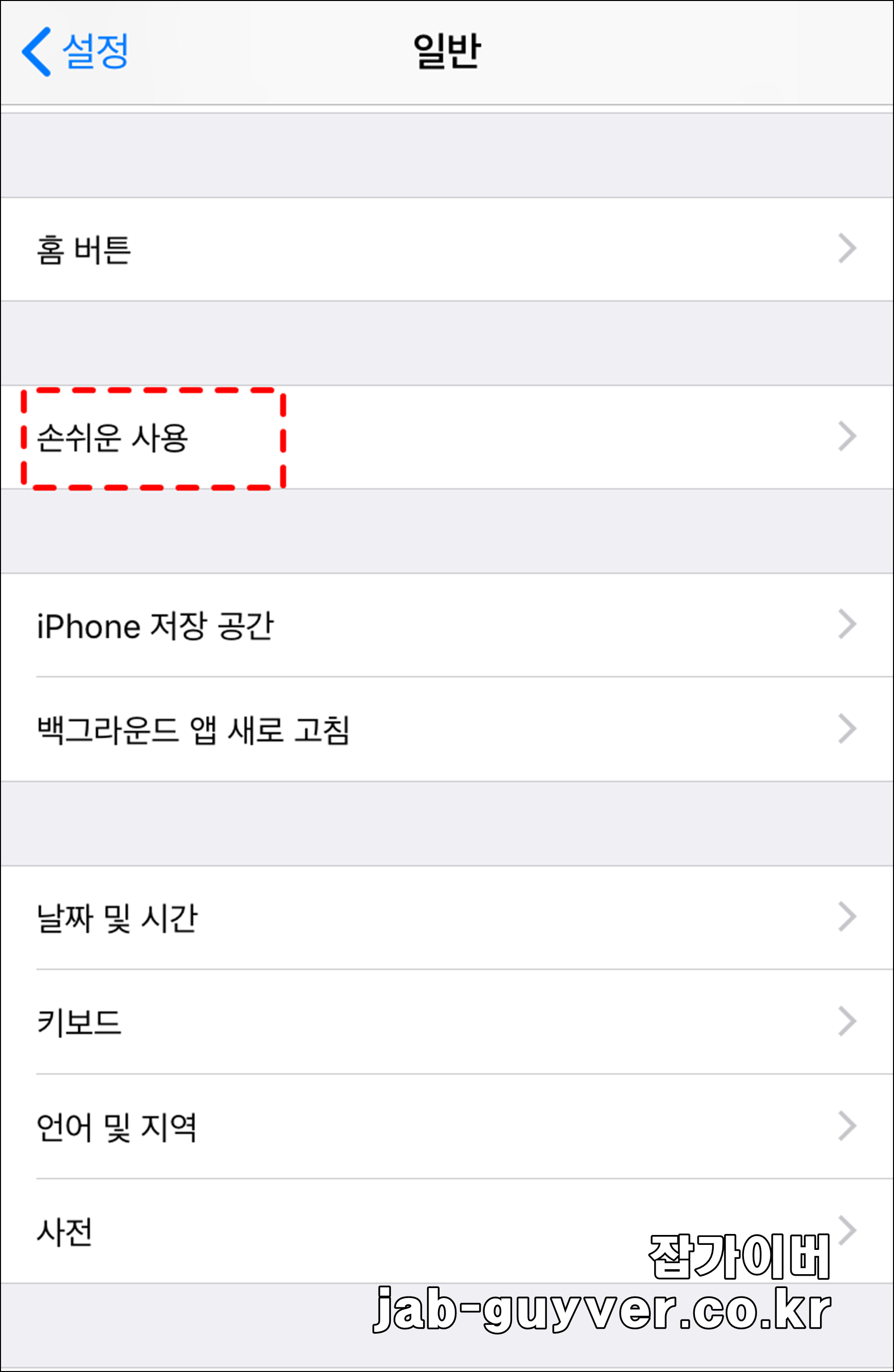 예전 글에는 “일반 → 손쉬운 사용”으로 되어 있는 경우가 있는데, 요즘 iOS에서는 경로가 조금 달라져 있습니다.
