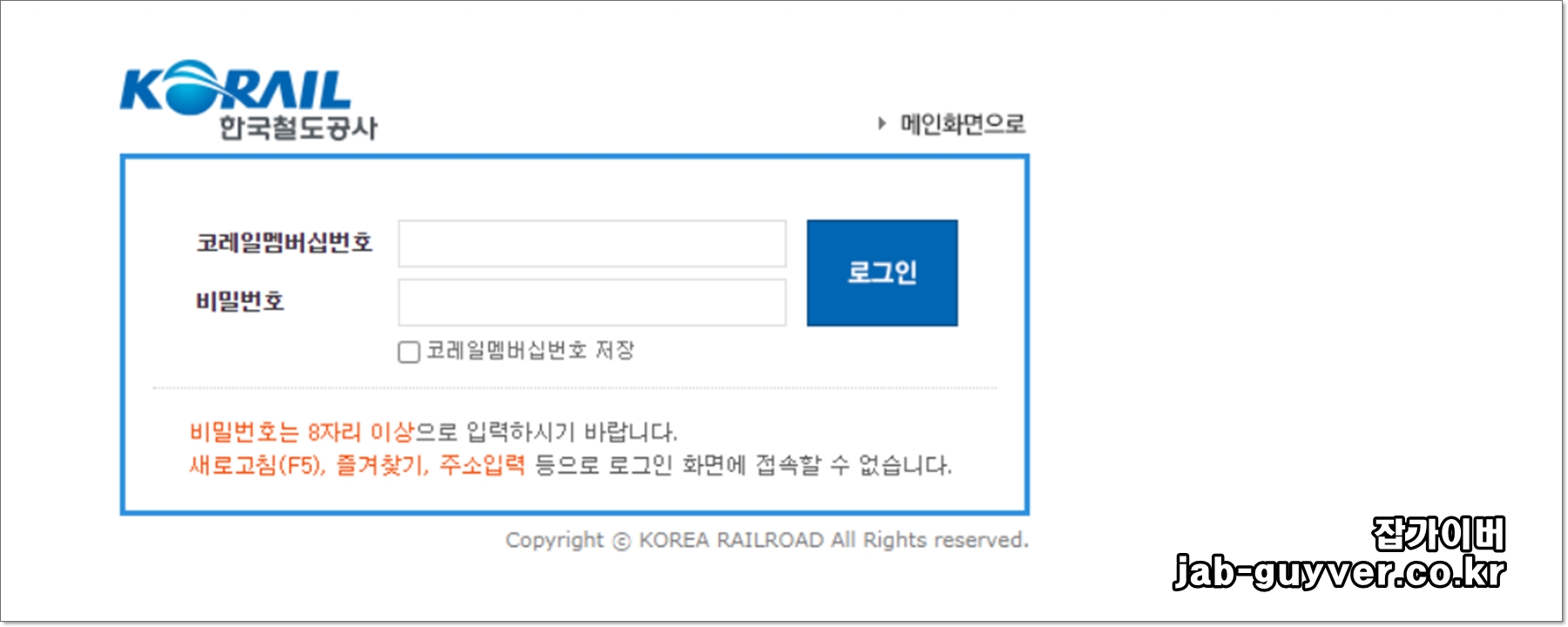 당일 티켓팅 할 때 회원번호 틀리거나 비밀번호 틀리면 대기 번호가 엄청 밀리기 때문에 절대 틀리지 않는 것이 중요하며 코레일 회원번호가 없다면 미리 회원가입을 해서 회원번호랑 비밀번호를 별도로 적어두는 것이 좋습니다.