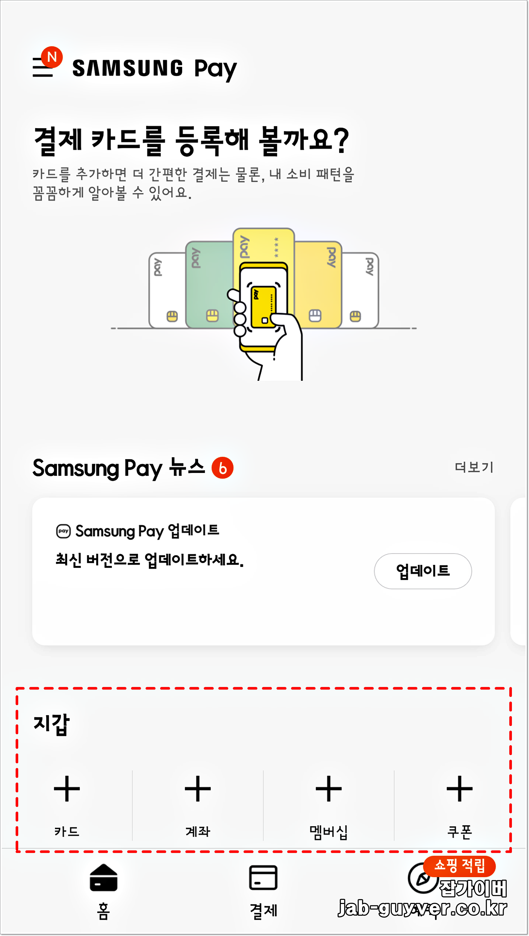 이렇게 삼성페이의 보안설정이 완료되었다면 신용카드나 체크카드를 등록할 수 있습니다.