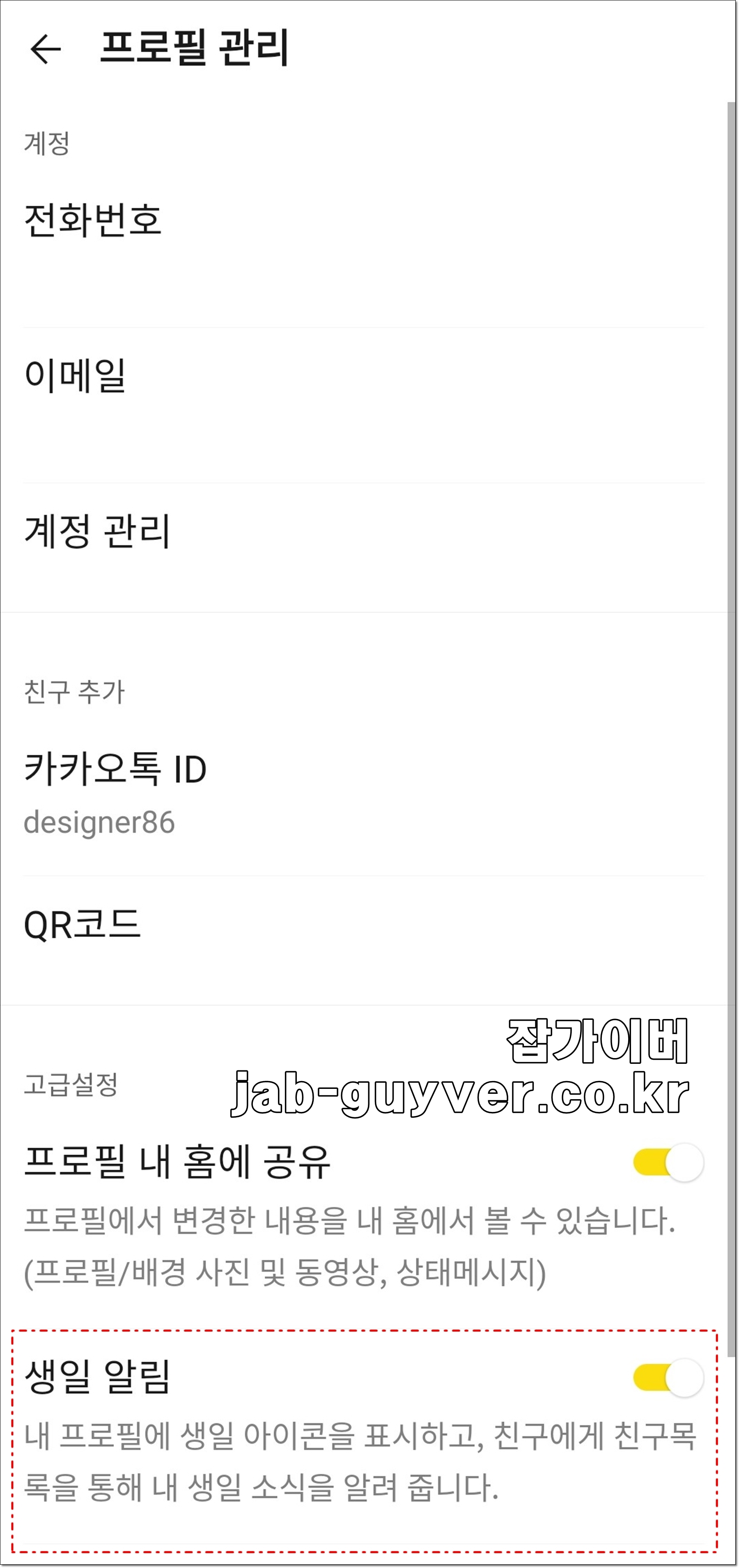 카톡 내 생일 및 친구 생일 표시 및 안보이게 비활성화 설정