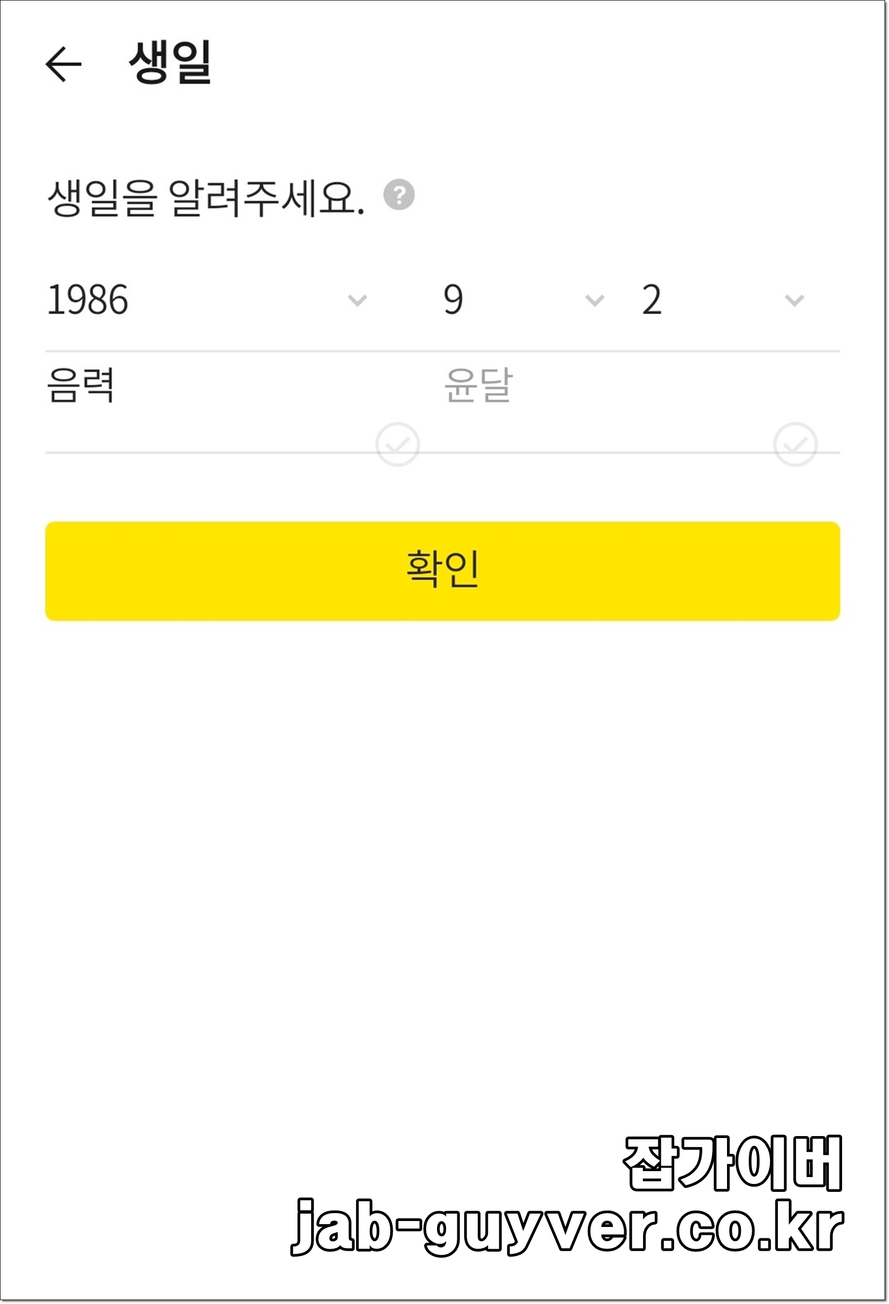 생일을 선택한 뒤 원하는 날짜로 바꾸고, 음력인지 양력인지 정확히 맞춰 저장합니다.