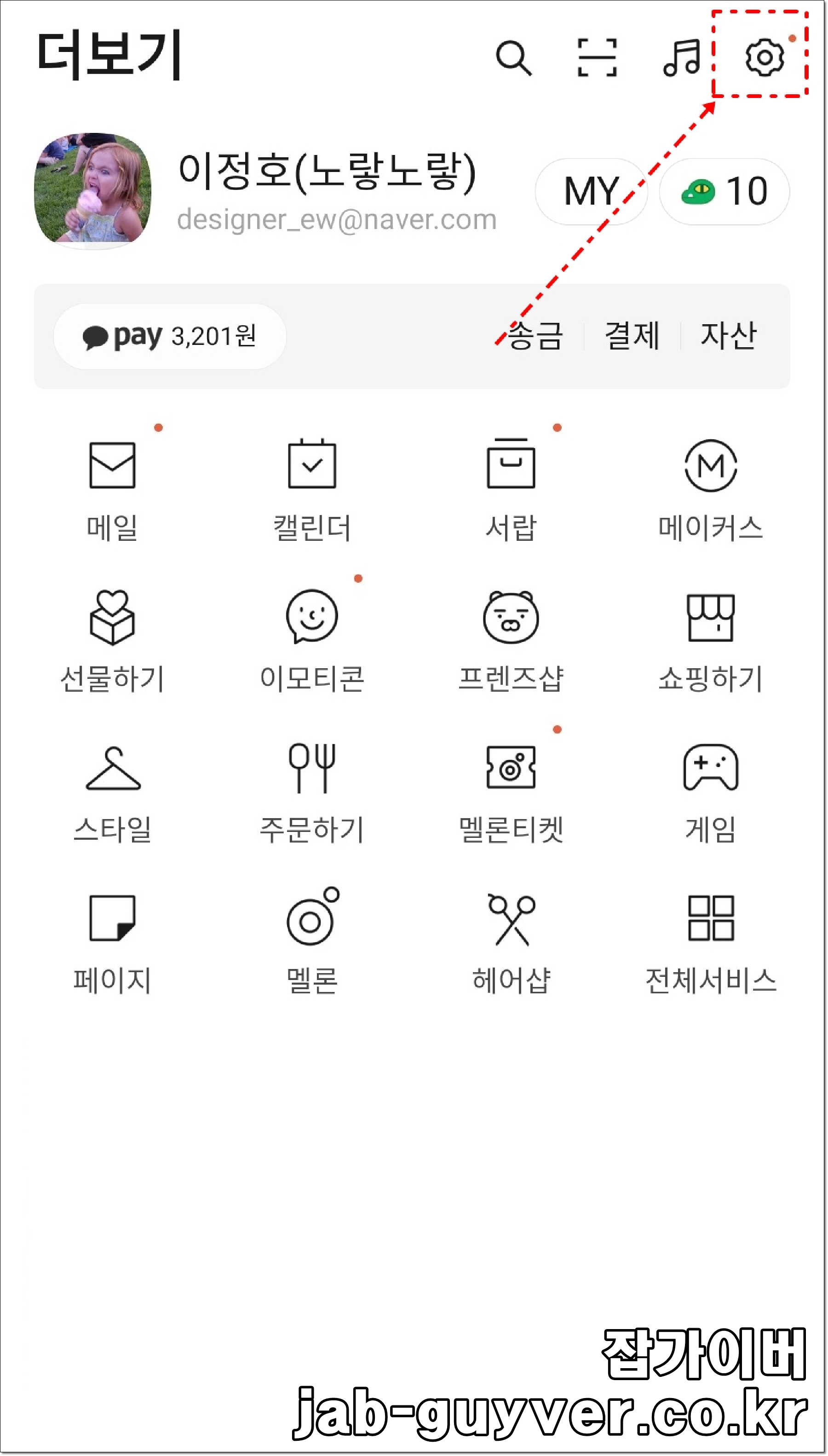- 우측 상단 "기어"아이콘을 선택합니다.