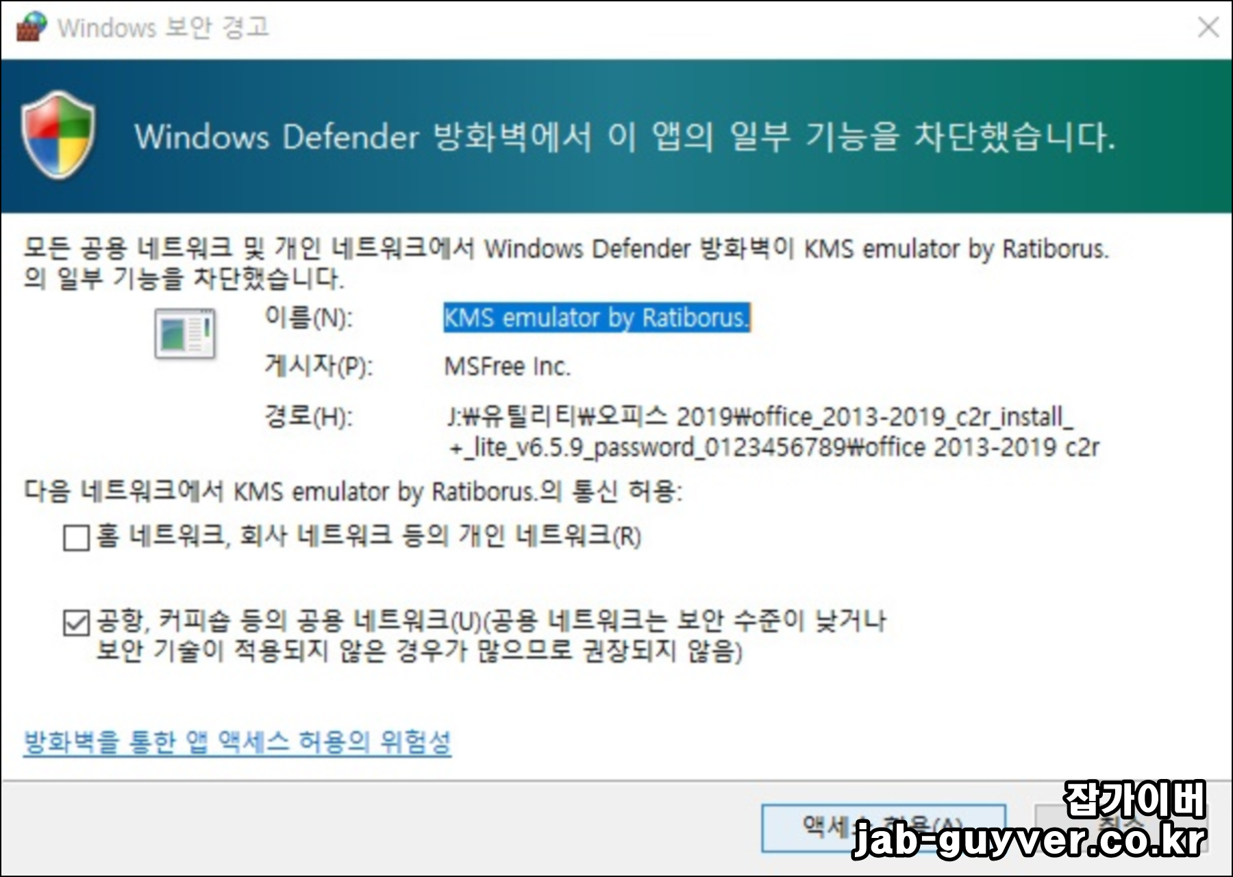 크랙을 사용시에는 Windows Defender 방화벽이 실행될 수 있습니다.