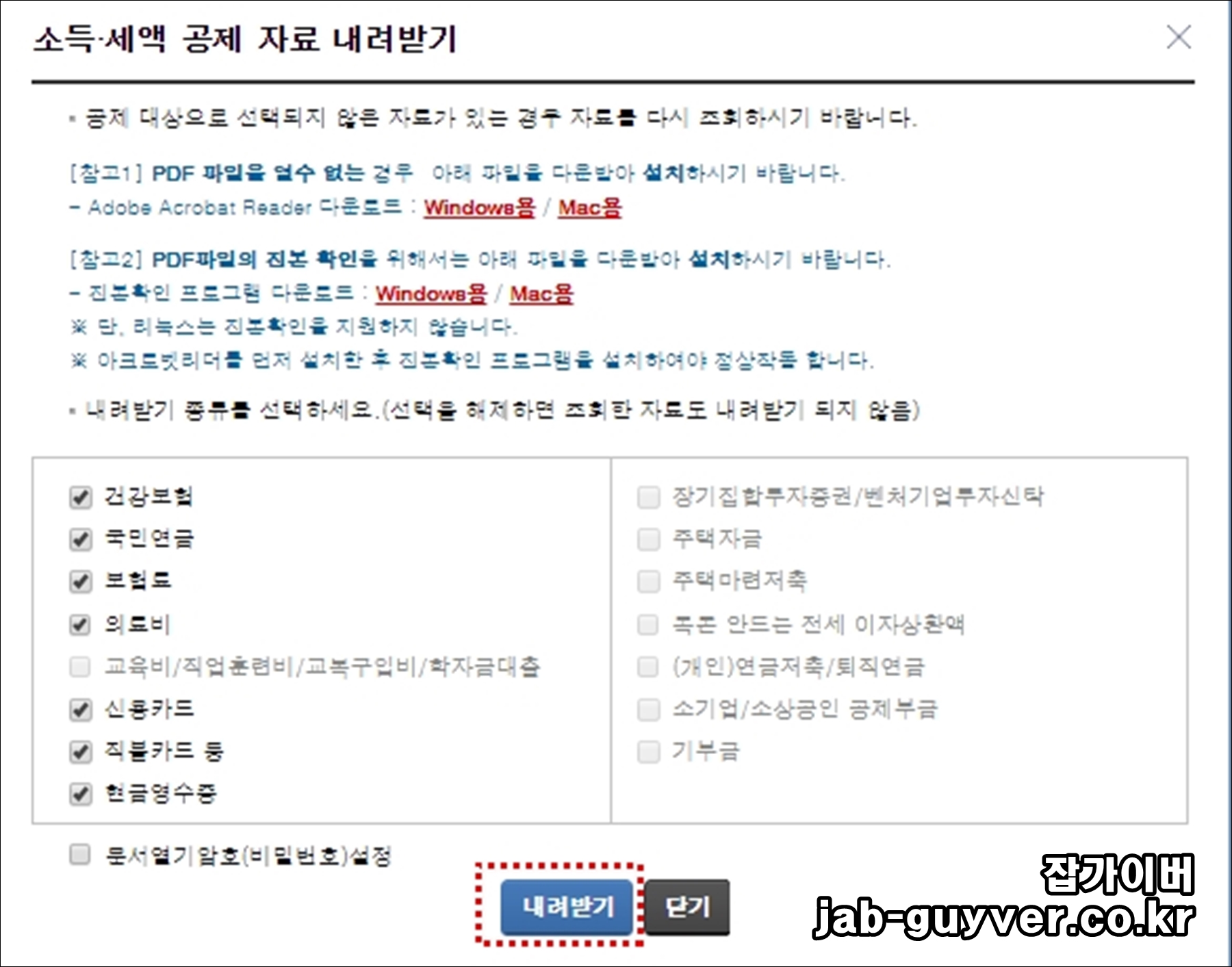 연말정산 간소화 서비스자료 확인 |
