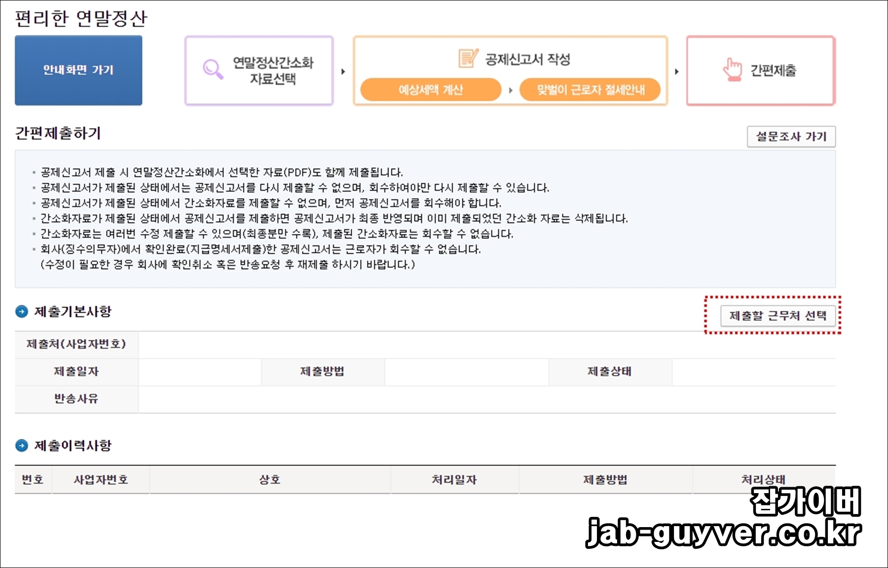 이후 제출할 근무처를 선택합니다.