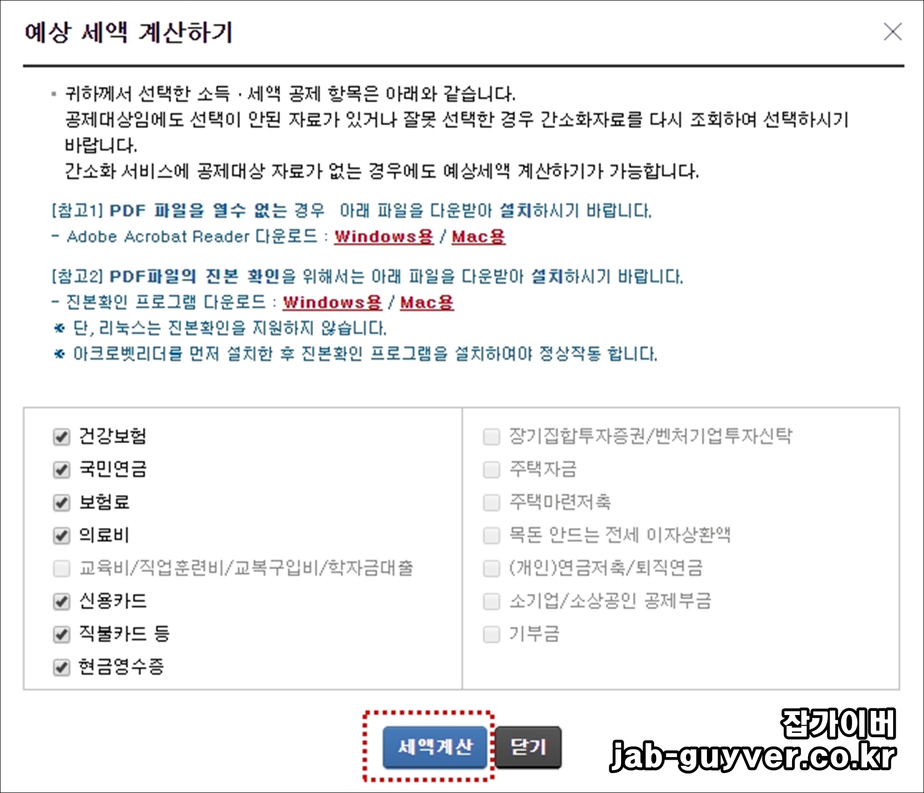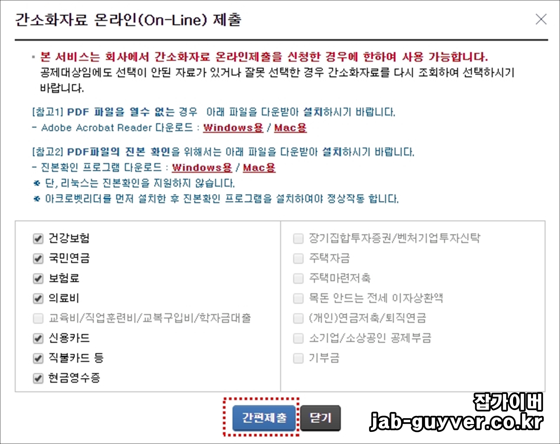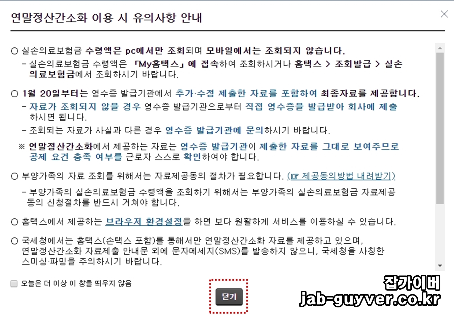 연말정산 간소화 이용시 유의사항입니다.