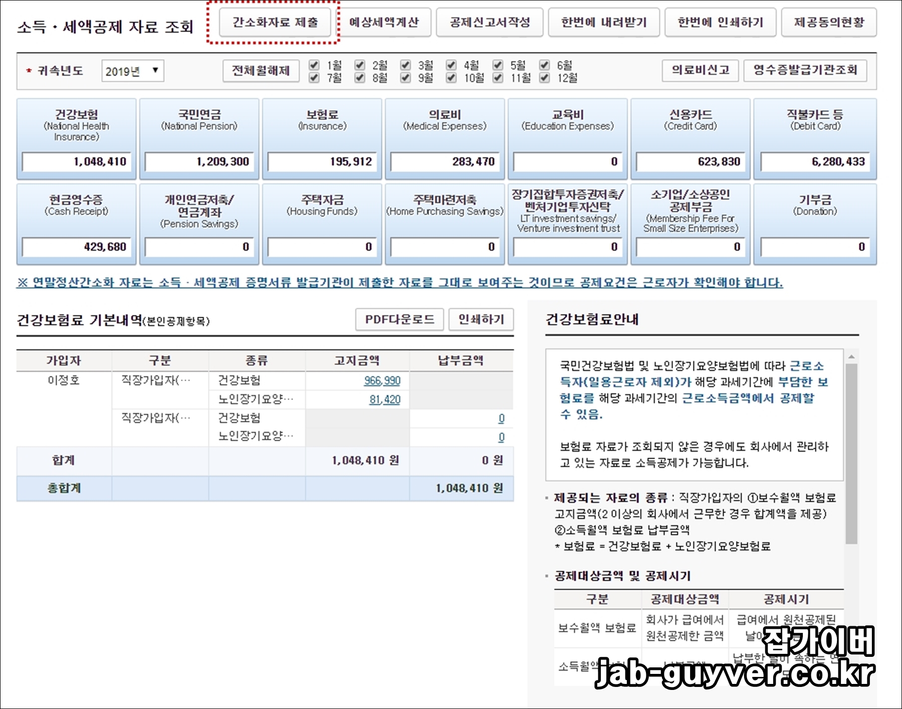 연말정산 간소화 서비스자료 확인 |