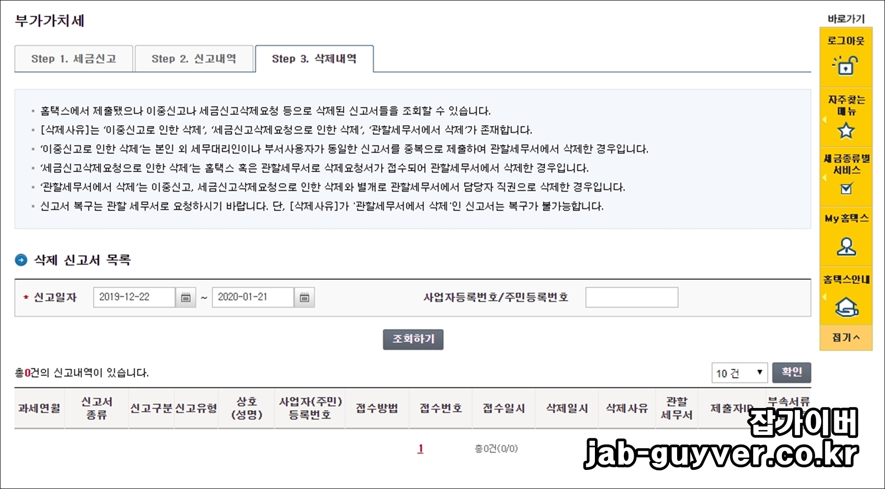 신고내역을 확인 후 제출되었거나 잘못 신고하거나 이중으로 신고한 경우 삭제를 할 수 있습니다.