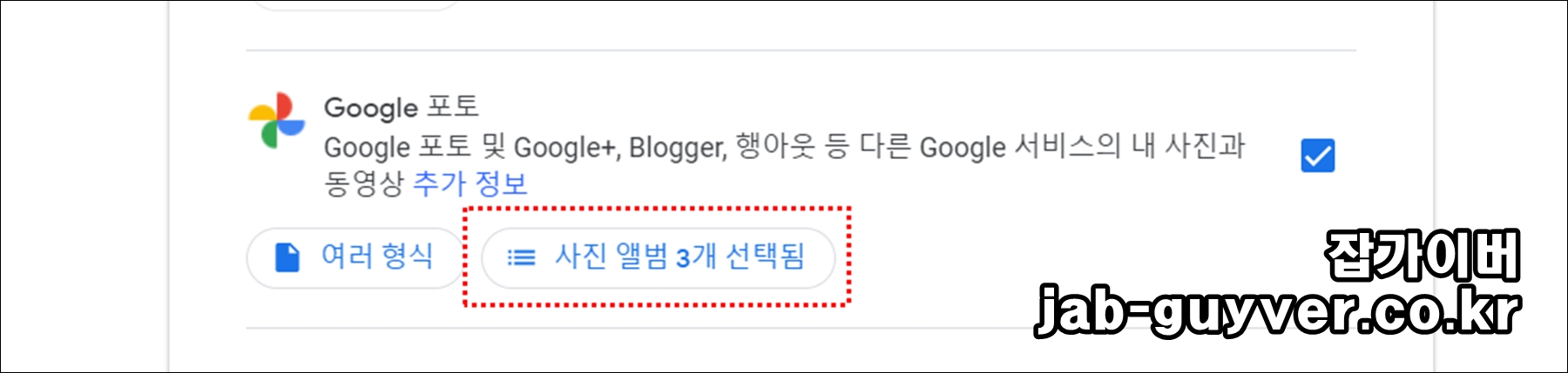 구글포토를 선택하면 사진 및 동영상 앨범 메타정보등을 저장할 수 있습니다.