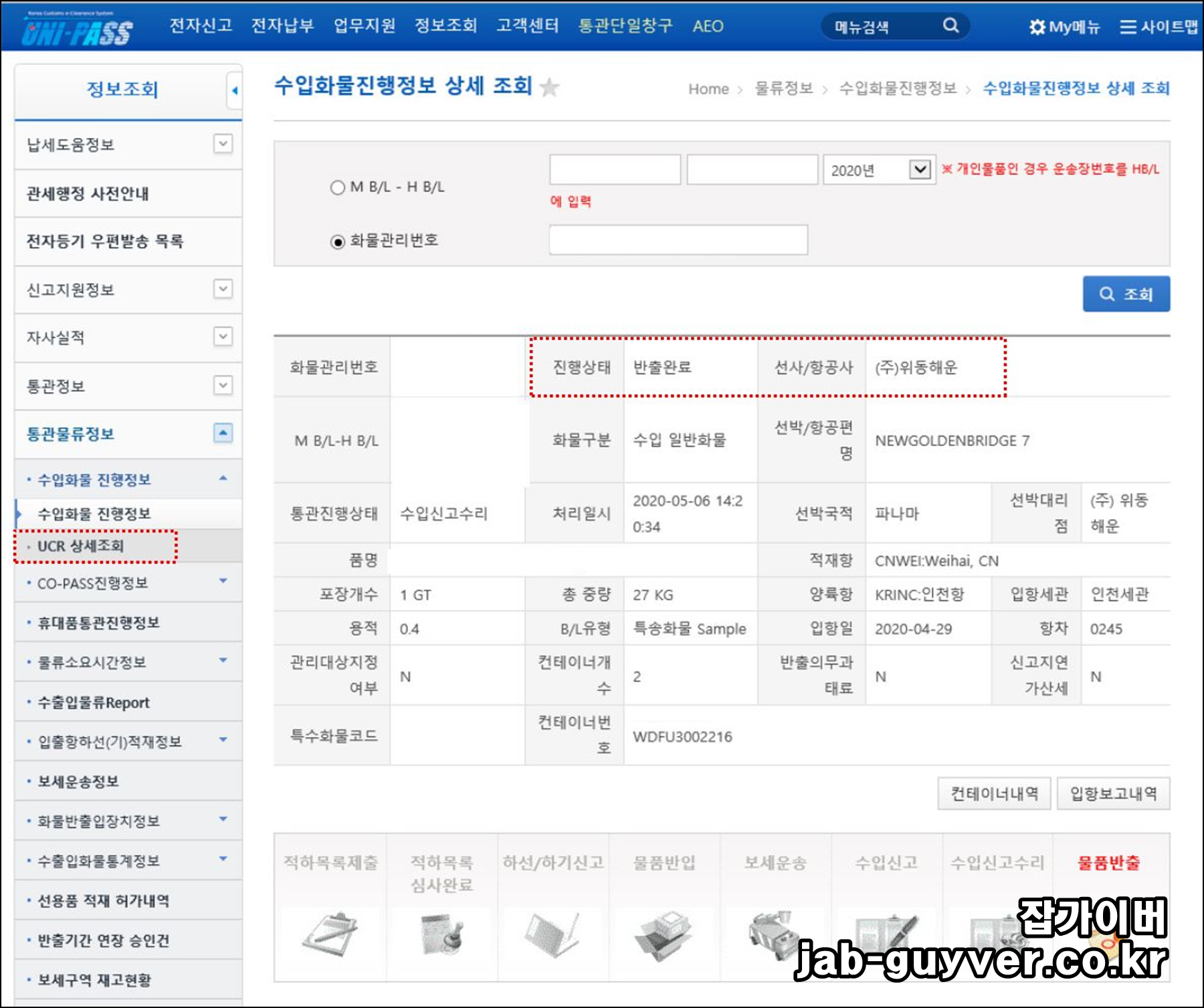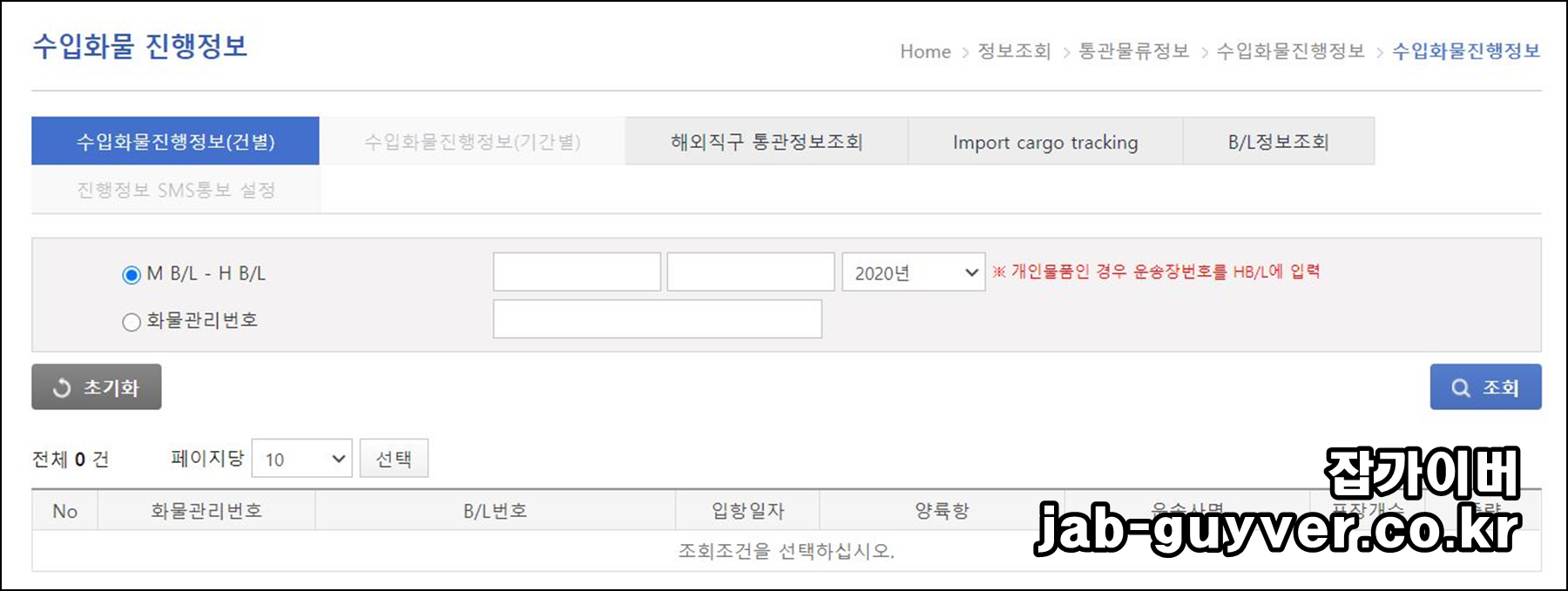 M B/L - H B/L - 수입화물 진행정보 상세 조회