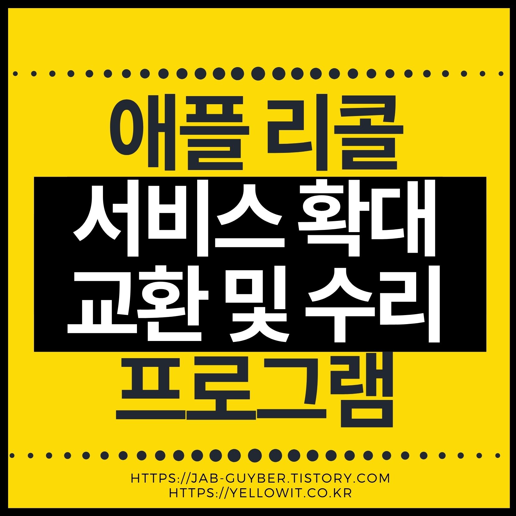 애플의 리콜 서비스 명칭은 '교환 및 수리 확대 프로그램'입니다. 교환 및 수리 확대 프로그램은 보증 기간으로부터 어느 정도 자유로우니 아래 해당하는 분들은 A/S 기간이 지났다 하더라도 걱정하지 마시고 아래 연락처로 전화하여 서비스를 받으세요.