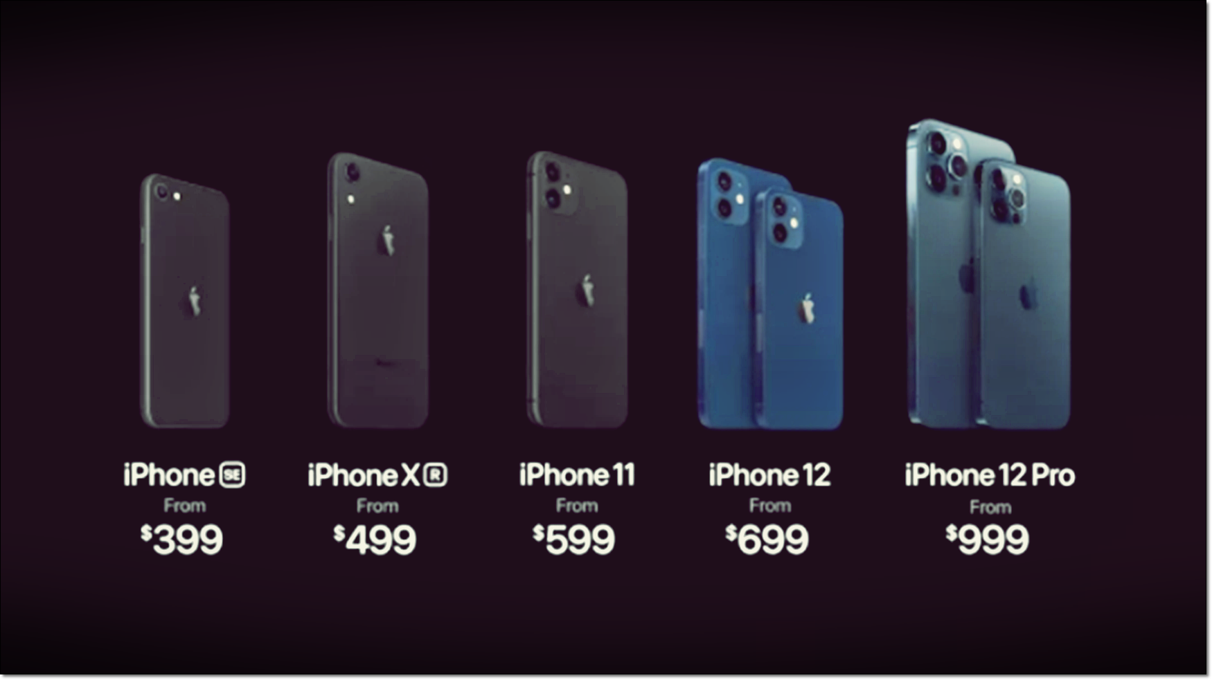 - 6.7인치 아이폰 12 pro max 모델은 1,099달러