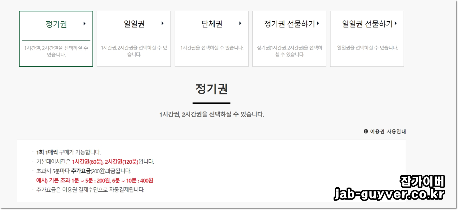 정기권의 경우 1회 1매 구입이 가능하며 1시간 2시간권을 선택할 수 있습니다.