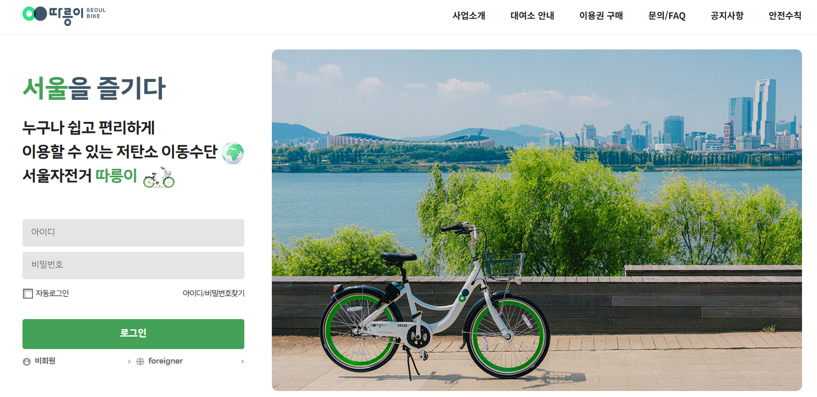 우선 서울시 따릉이 자전거 정기권 가격 및 대여방법에 대해 알아보겠습니다.