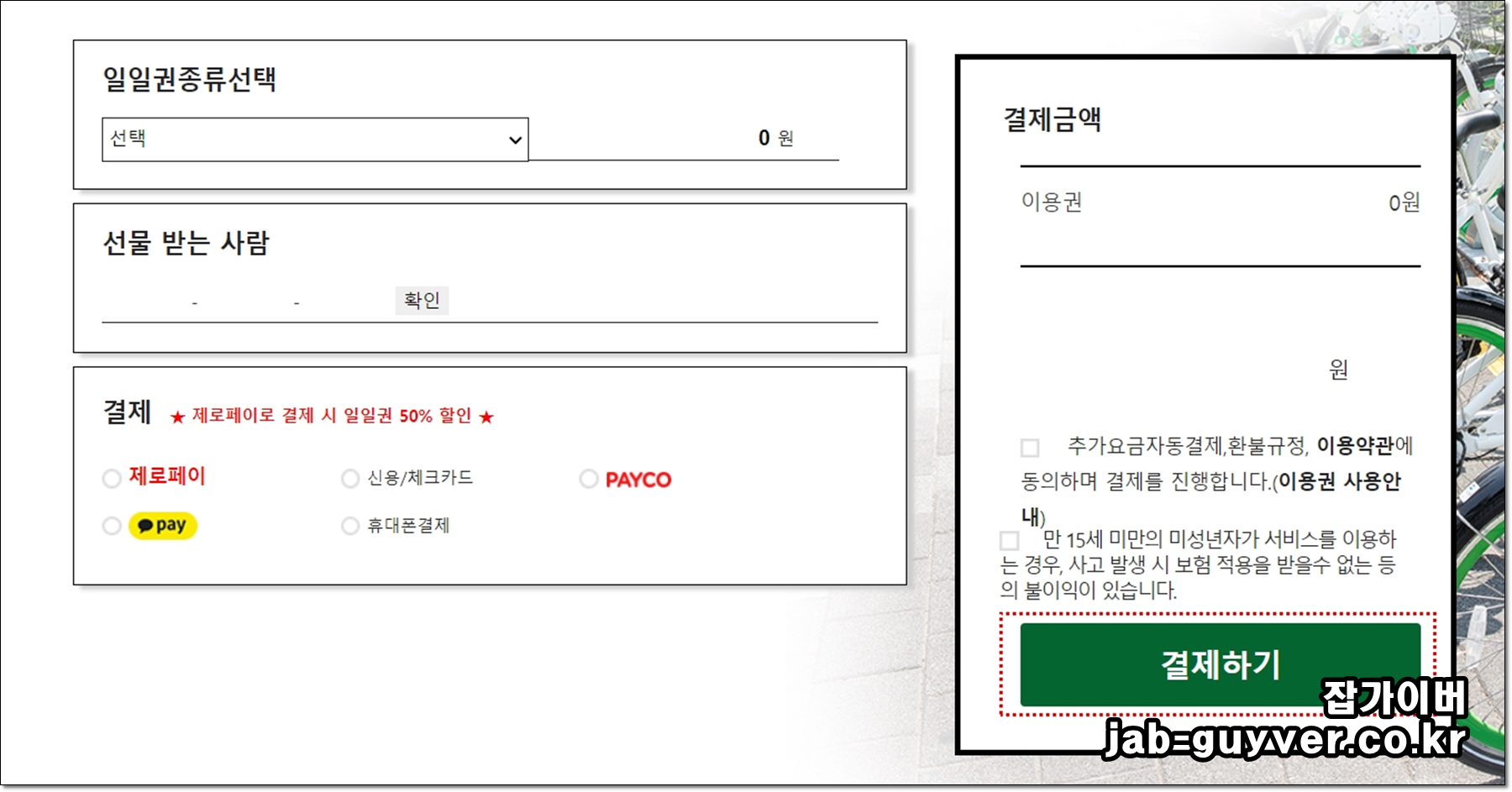 원하는 따릉이 정기권을 구입했다면 결제를 해서 사용이 가능합니다.