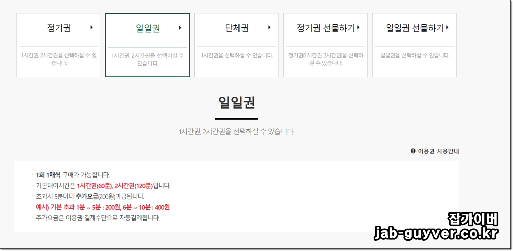 | 일일권 | 1,000원 | 2,000원 |