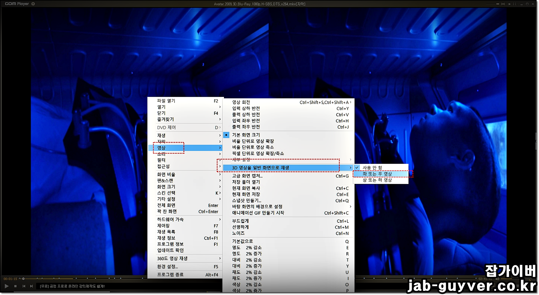 다음팟플레이어 3D 동영상 화면2개 설정방법
