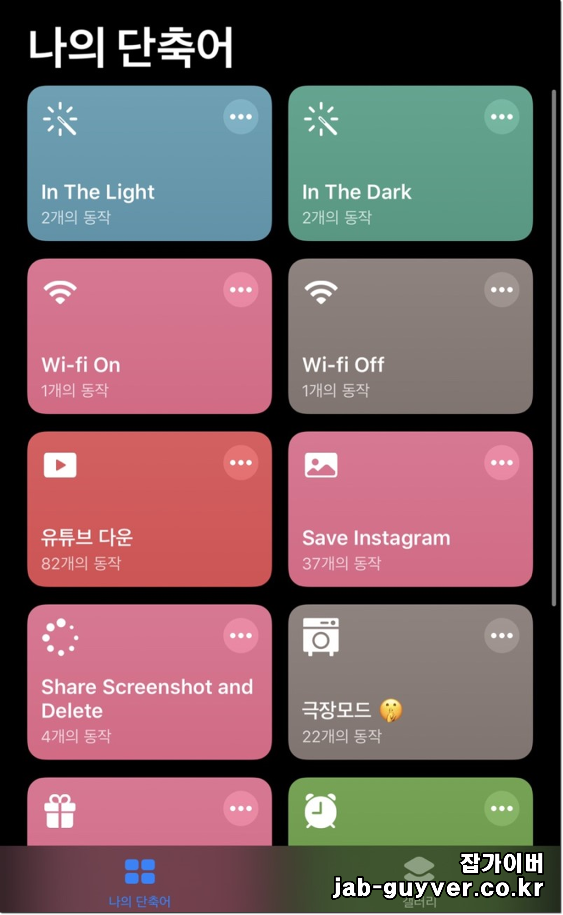 이렇게 각종 상황에 맞는 아이폰 단축어 설정이 완료됩니다.