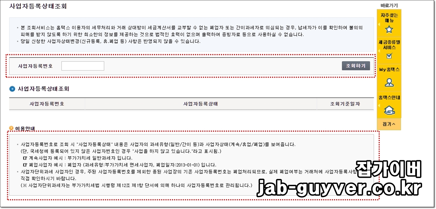 휴업 및 폐업 사업자번호 사업자등록상태 확인방법