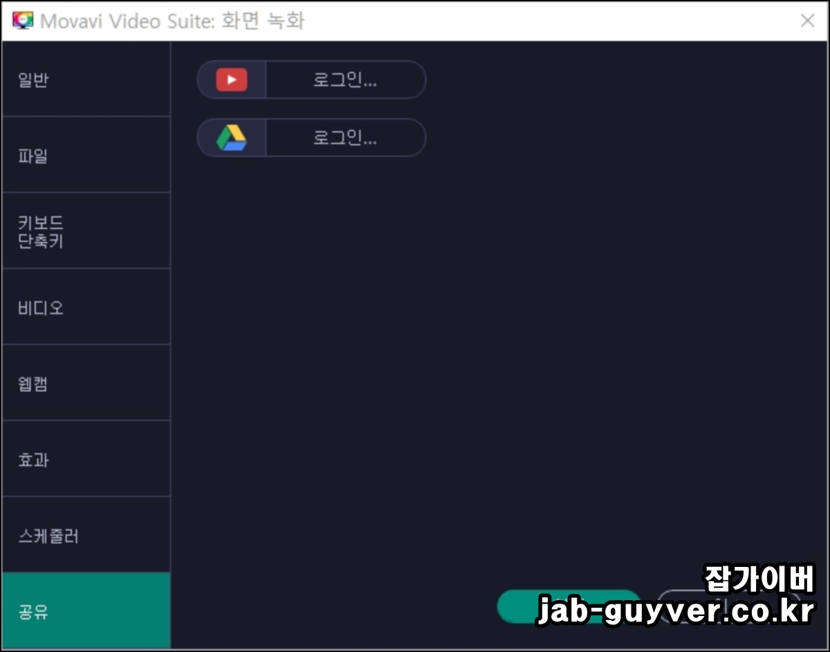 기타 예약녹화 및 유튜브나 구글 드라이브로 녹화한 영상을 바로 동기화하여 공유하도록 설정할 수 있습니다.