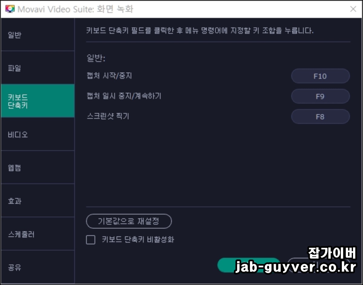 동영상 녹화 및 스크린샷 저장을 위한 단축키입니다.